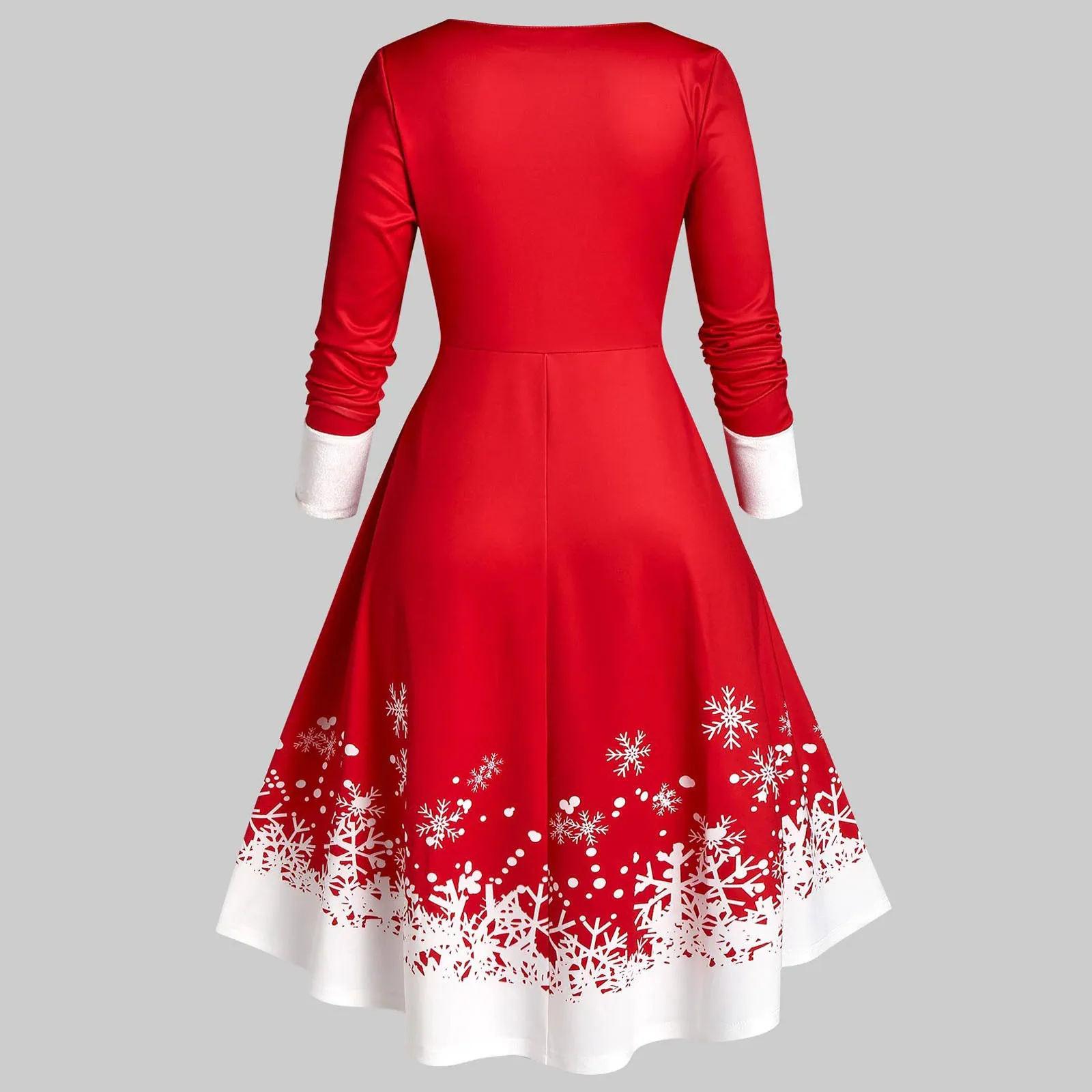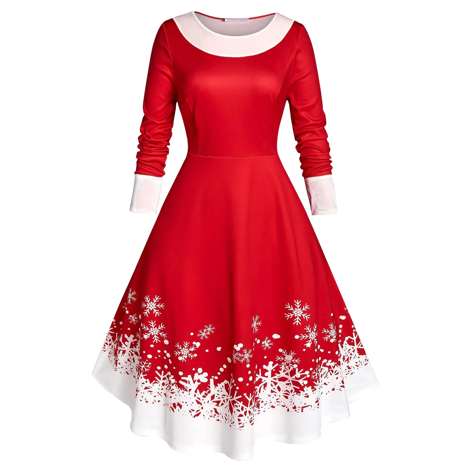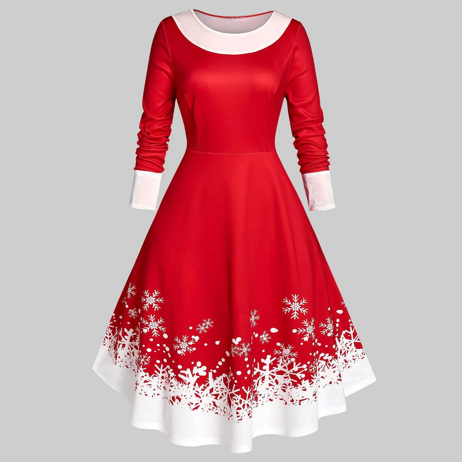Рождественские Платья, женское винтажное рождественское платье с принтом снежинок, бархатное вечернее платье с длинным рукавом, Платья для праздников