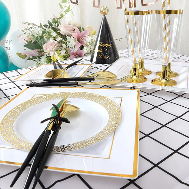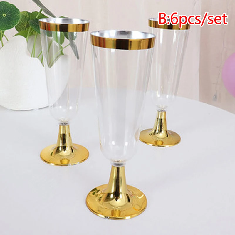 Пластиковые Золотые бокалы для шампанского, одноразовые бокалы для вечерние ринки и свадьбы, бокалы для провозглашения тостов