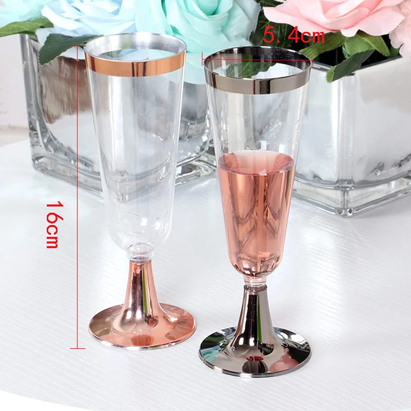 Особенности:Высококачественная конструкция. Эти одноразовые флейты из розового золота долговечно изготовлены из прочной пластиковой конструкции, устойчивы к поломке и защелкиваются на протяжении всего вашего особого события. BPA-и не токсичен, этот 100% пищевой пластик обеспечивает безопасное потребление напитков.Элегантный дизайн. Кристально чистые очки прекрасно дополняются окантовкой в оправе и основанием, доступны в золотом, розовом или серебристом цветах. Добавив элегантный, современный штрих к любому особому случаю, этот сияющий вид идеально подходит для всех случаев.Одноразовые чашки. Наслаждайтесь развлекательной, а не уборкой на кухне. Эти флейты являются одноразовыми и пригодными для вторичной переработки для дополнительного удобства, плюс вам не придется беспокоиться о риске разбитого стекла.Идеальный размер. Эта флейта объемом 150 мл идеально подходит для тостов шампанского на любом мероприятии. Они легко держать в руке и предложить идеальное количество элегантности для обновления любого события.