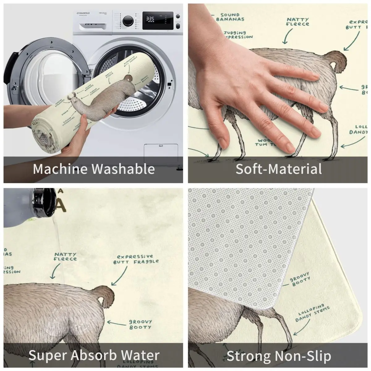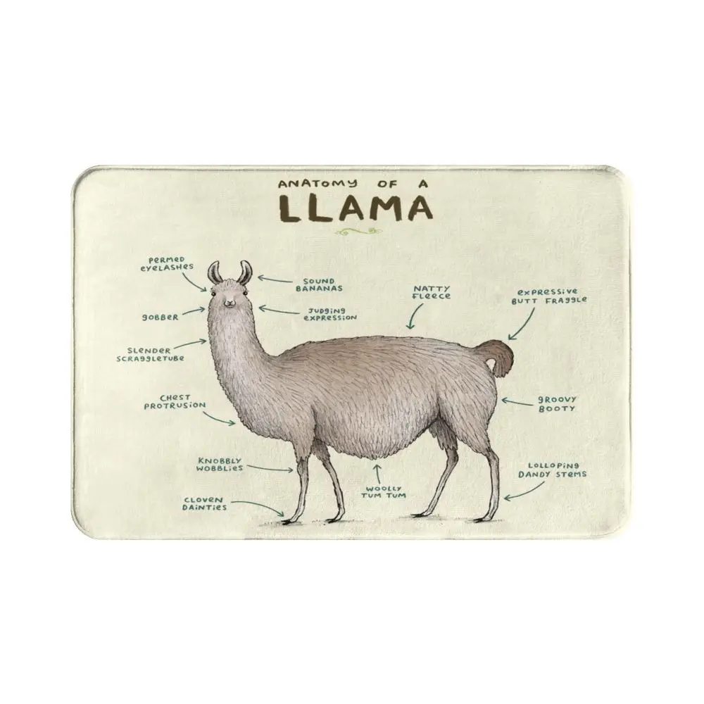 Анатомия ламы альпака, дверной коврик для спальни, добро пожаловать, ковер для входа в дом, прихожей, животное, пыленепроницаемый напольный коврик, дверной коврик, коврик для ванной