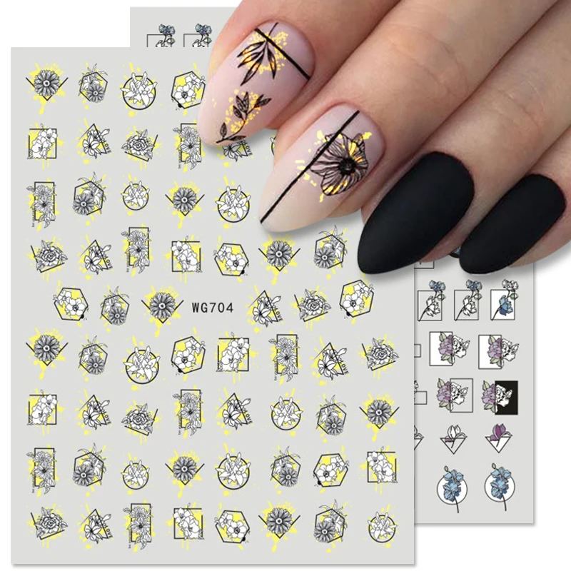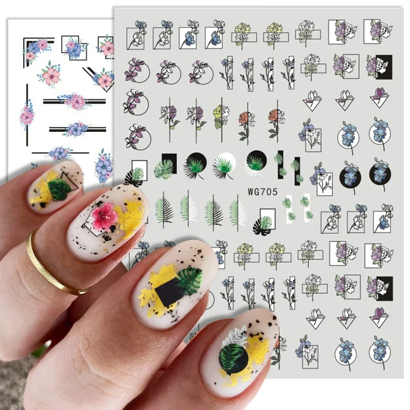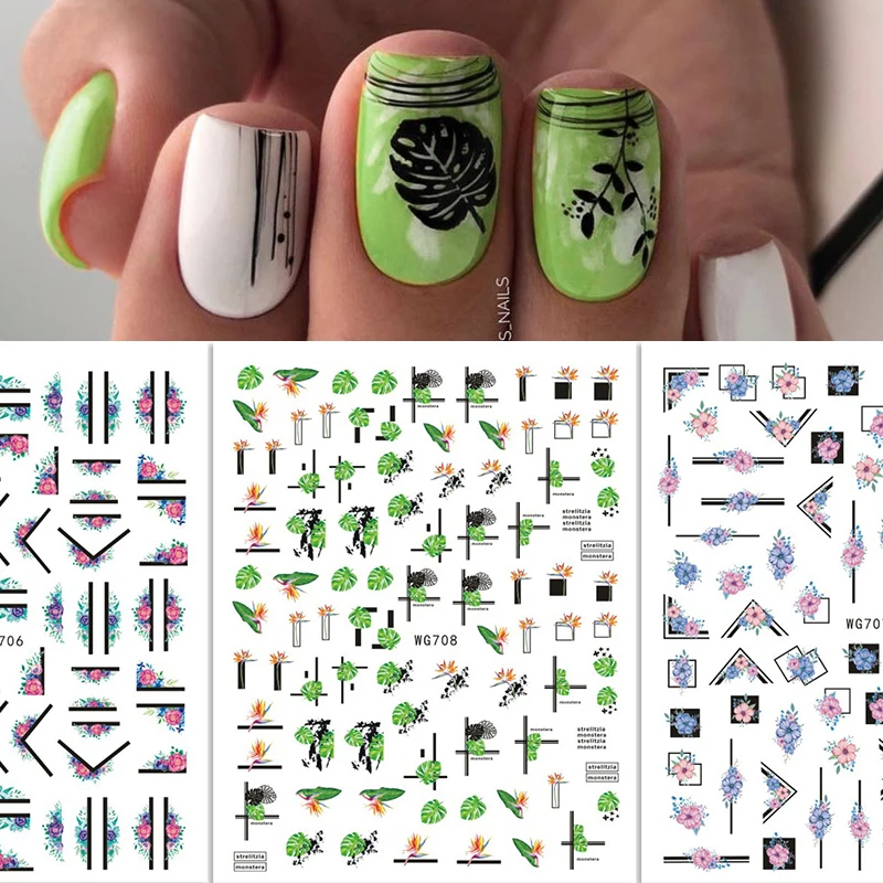 1 лист 3D наклеек для ногтей во французском стиле, цветок, лист, дерево, зеленые летние ногти, самоклеящаяся передача для дизайна ногтей