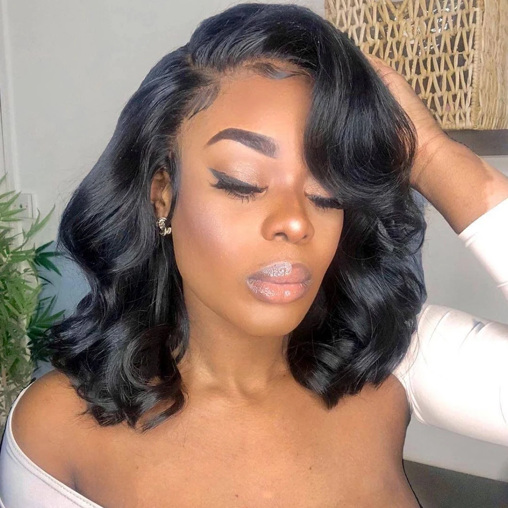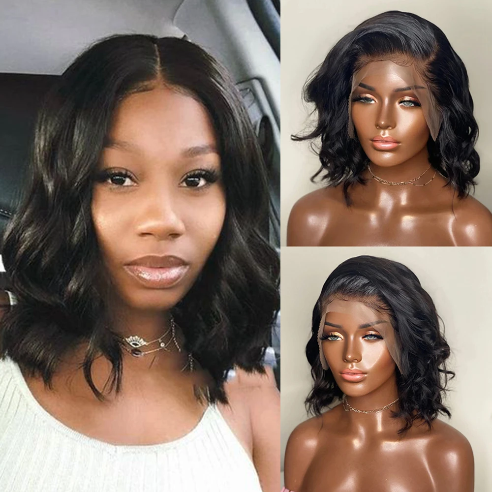 Короткий Свободный парик с волнистыми волосами, парик из человеческих волос на сетке спереди для женщин, 13x4 HD, прозрачный парик на сетке спереди, парик без повреждений 4x4