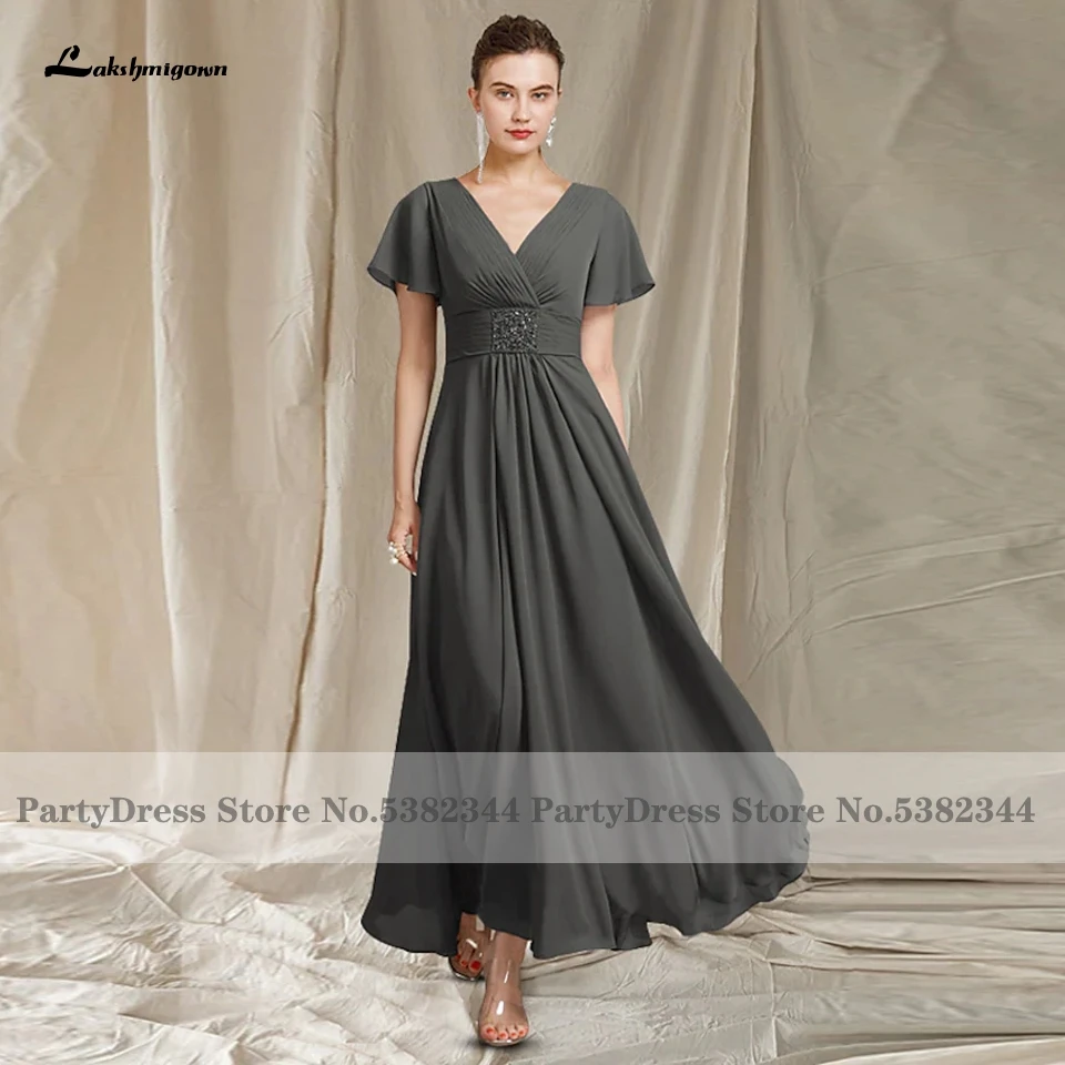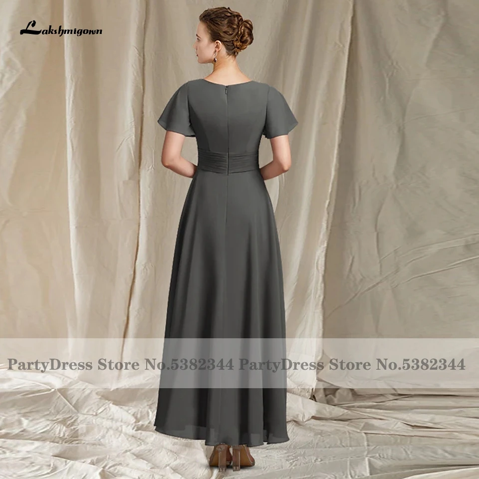 Lakshmigown, серое шифоновое Элегантное свадебное платье для матери невесты на свадьбу 2022, вечернее платье длиной ниже колена с коротким рукавом