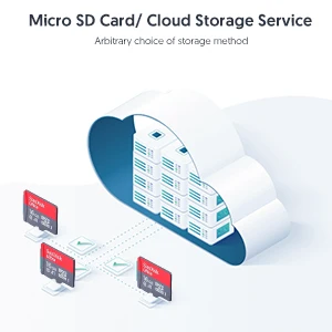 Micro SD/Cloud: Внешняя камера безопасности Victure поддерживает карту Micro SD до 64 Гб (карта Micro SD в комплект не входит). Также поддерживается зашифрованная облачная служба безопасности.