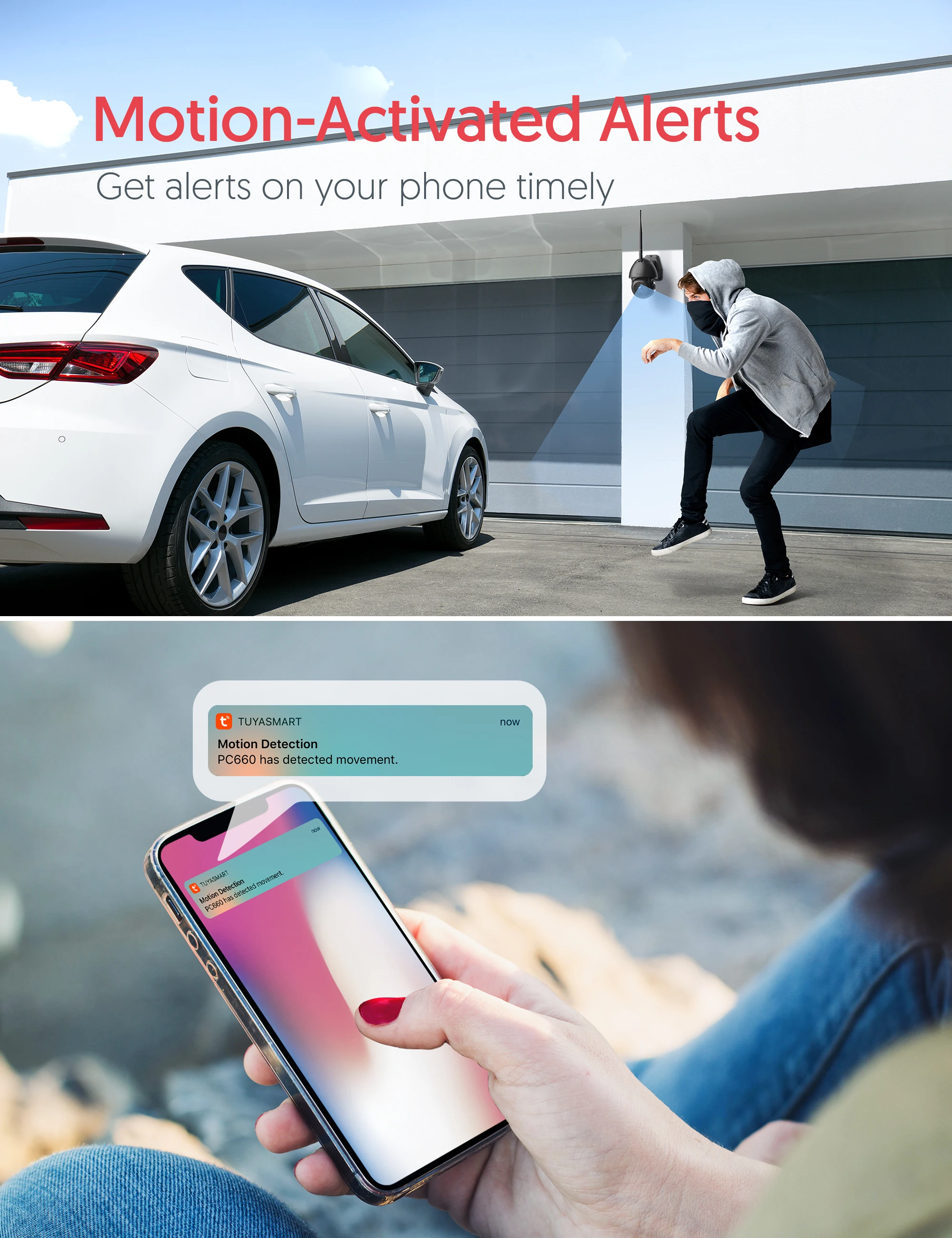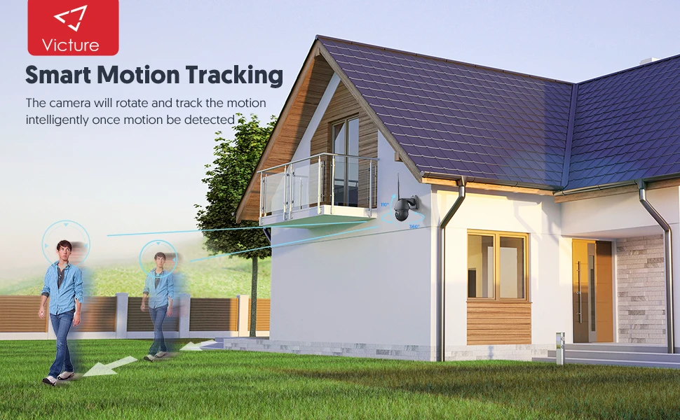 Интеллектуальное отслеживание движения: камера безопасности Victure butdoor будет автоматически отслеживать движение, так что вы не пропустите ни одной детали о ненормальной деятельности вокруг вашего дома.