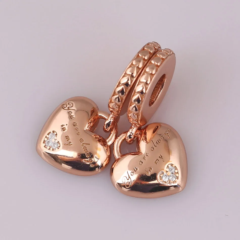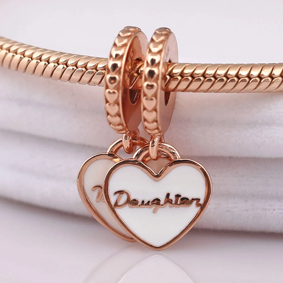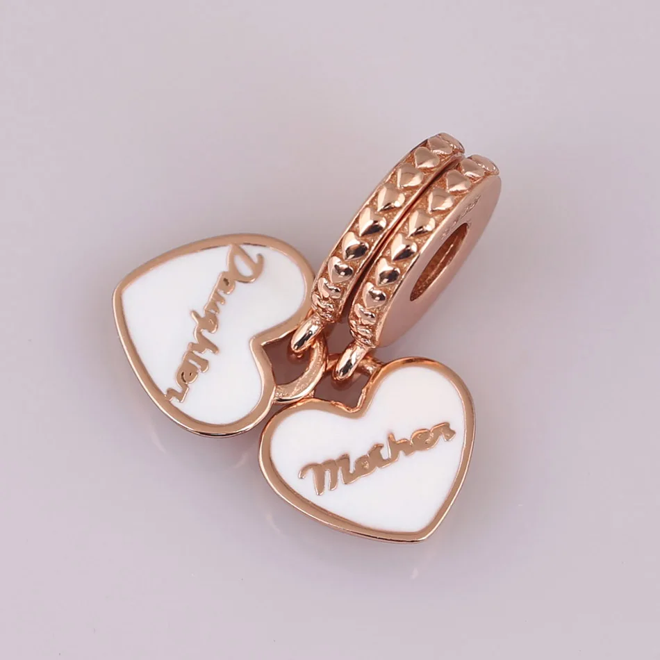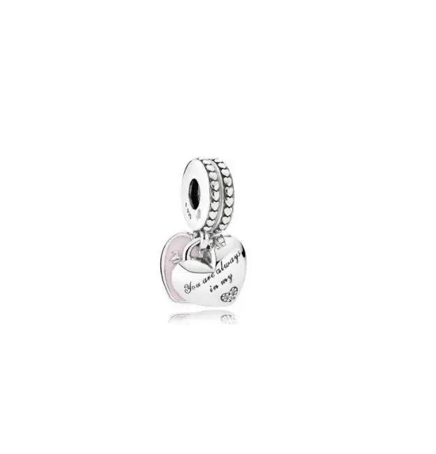 Бусины из серебра 925 пробы с белыми эмалированными розовыми сердеч...