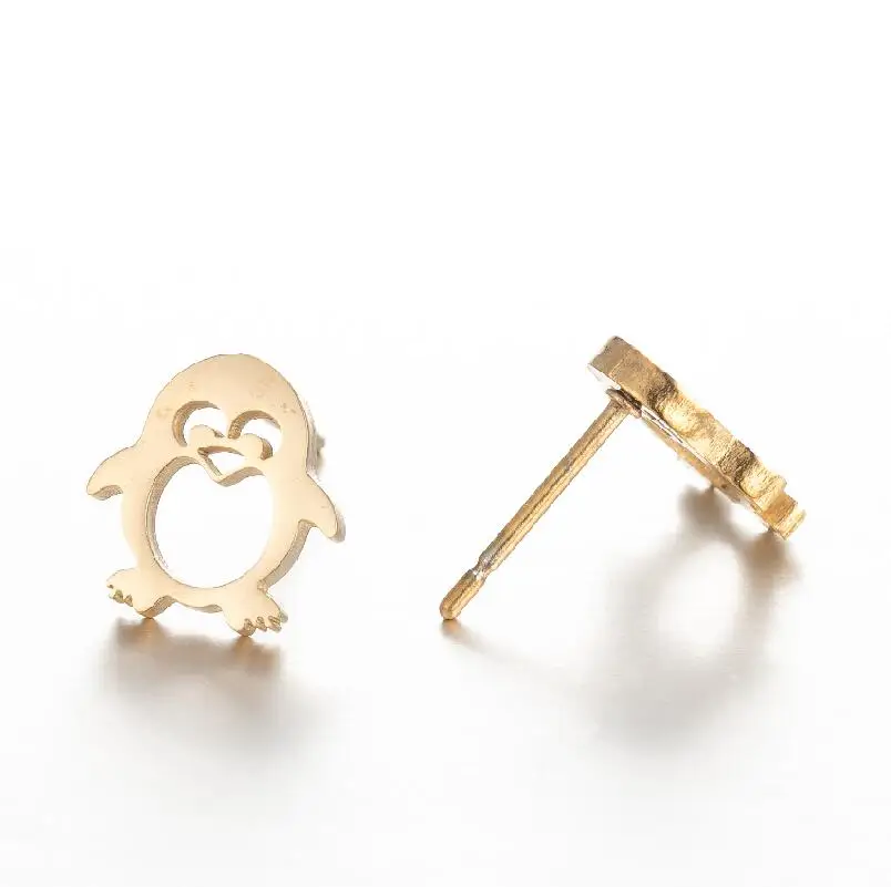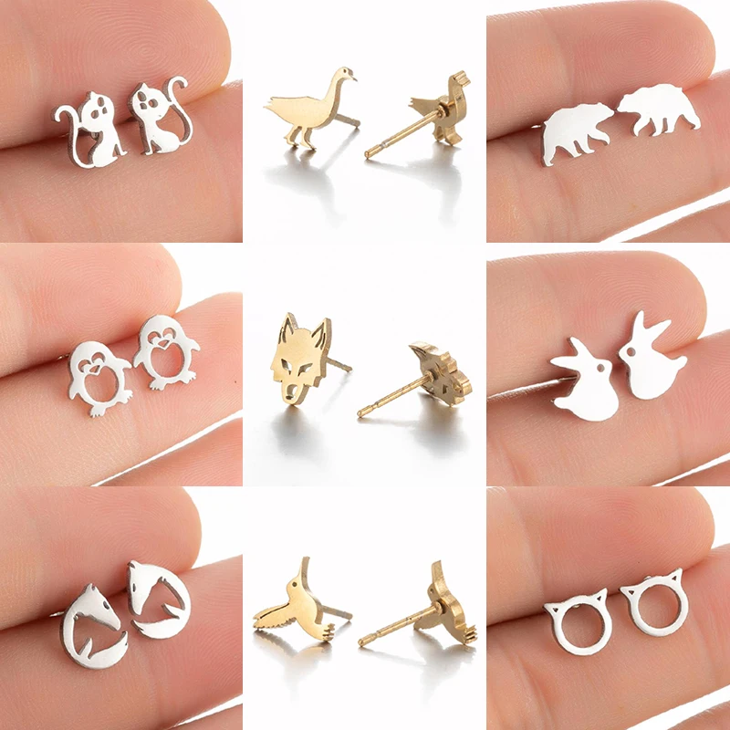Симпатичные серьги из нержавеющей стали, милые серьги с животными, пингвином, кошкой, волком, колибри, женские модные украшения, 2021, рождественские подарки