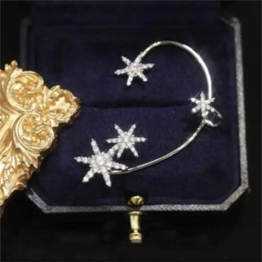 Изысканные металлические клипсы для ушей с блестящим цирконием и ли...