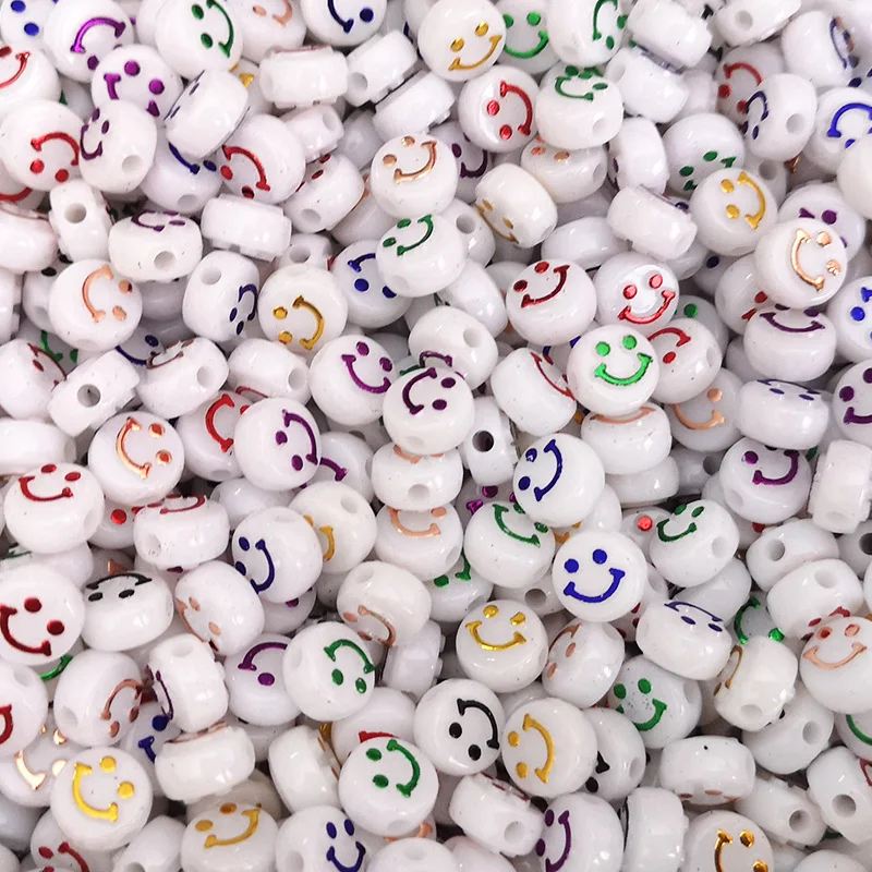 100 шт.лот 10 мм круглые плоские бусины в форме смайлика Акриловые Свободные разделенные бусины для изготовления ювелирных изделий сделай сам шармы браслет ожерелье
