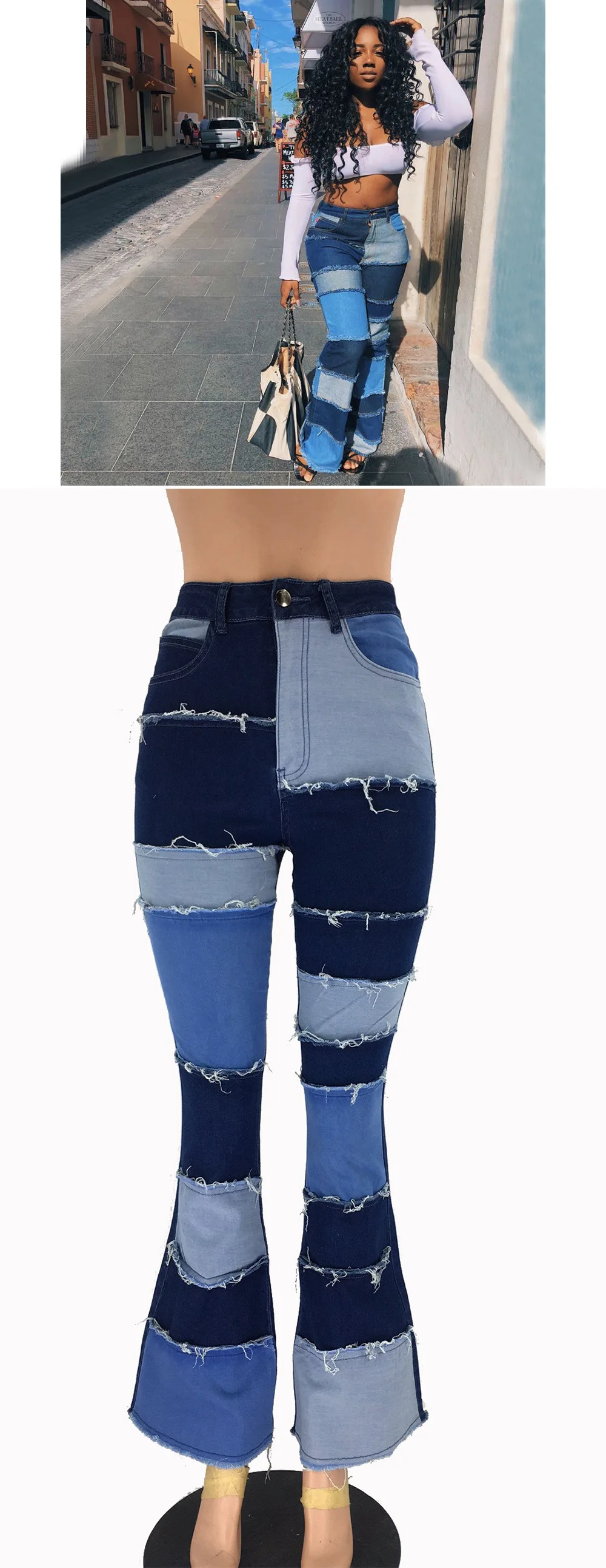 Женские джинсы в стиле пэчворк, пикантные облегающие брюки, повседневные брюки с высокой талией, обтягивающие бедра, популярная уличная одежда