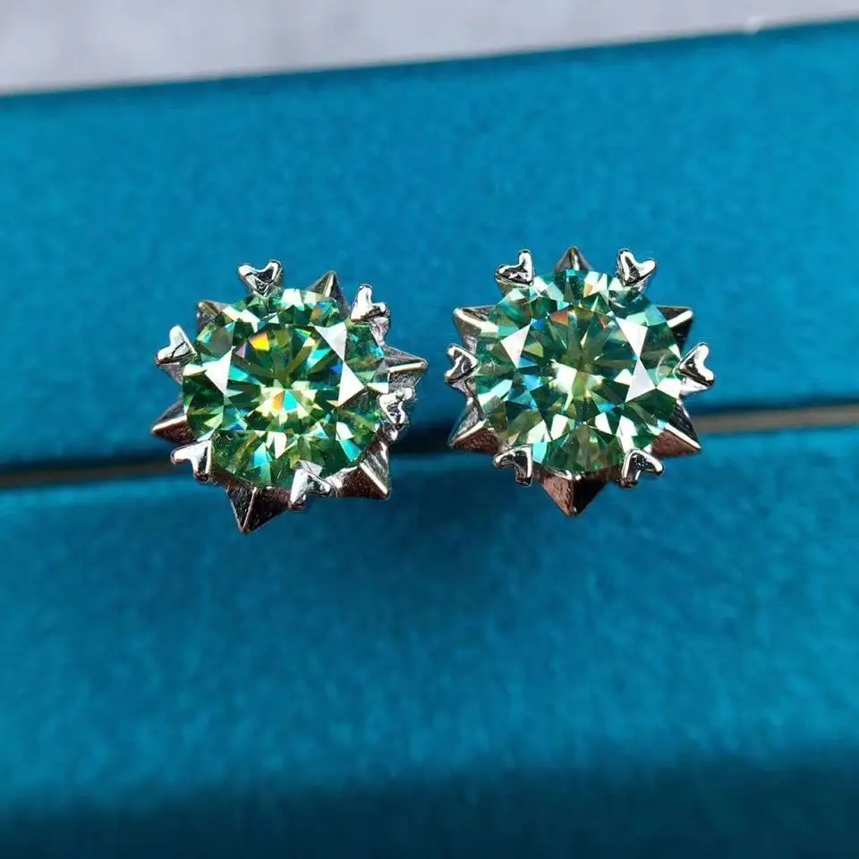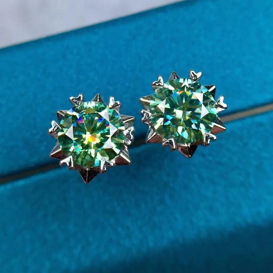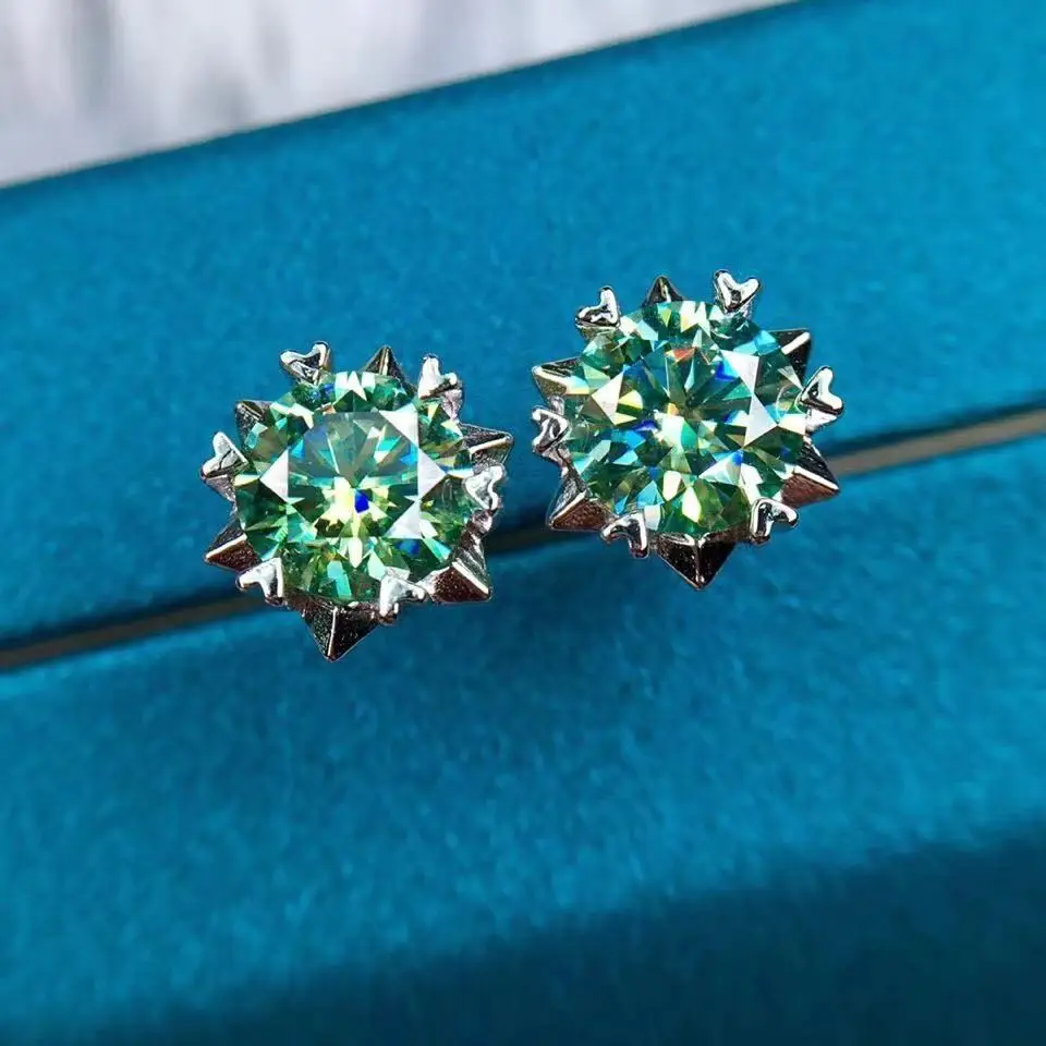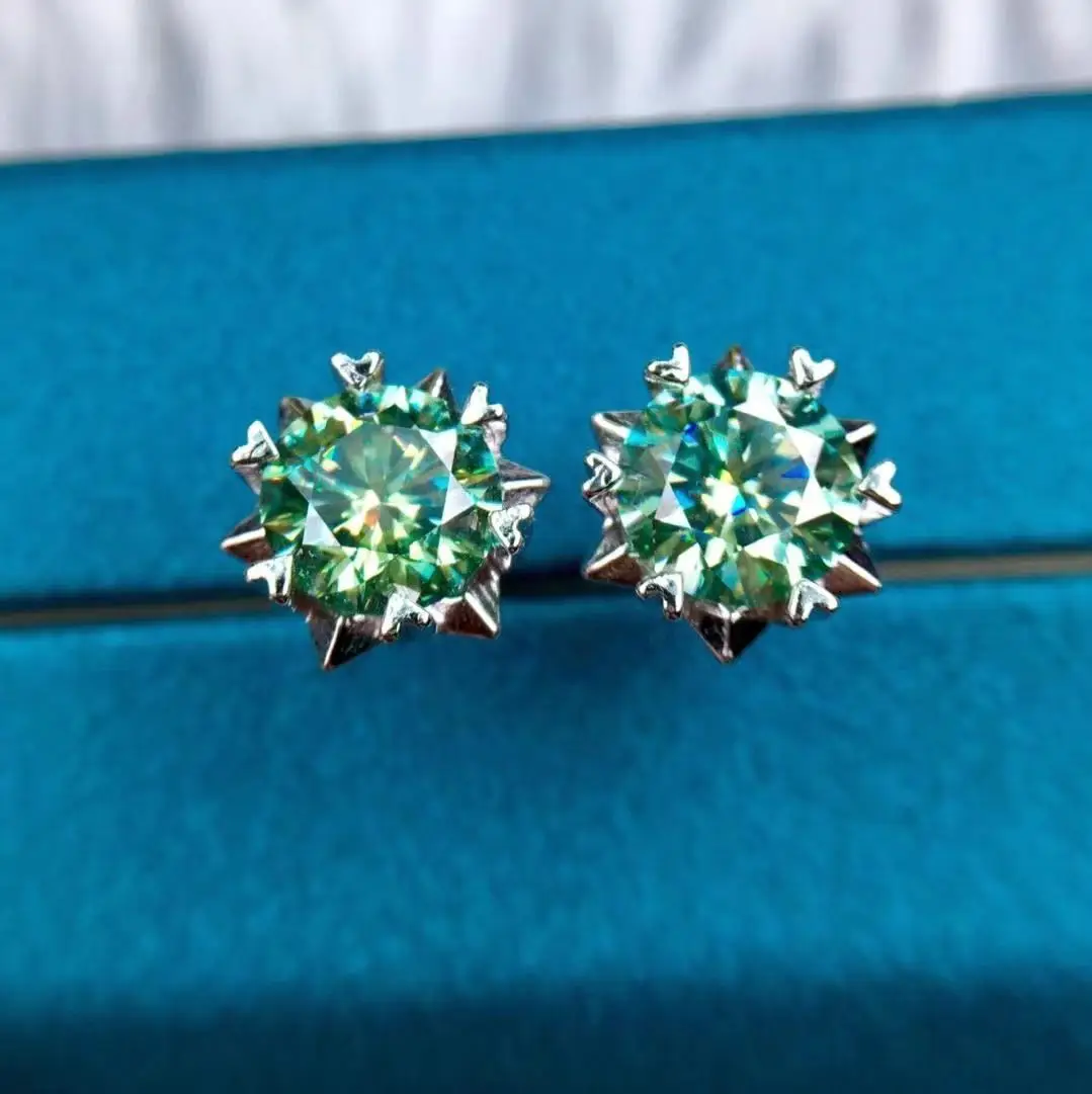 Серьги с драгоценным камнем для женщин, зеленый Муассанит, снежинка, искусственная бриллиант, всего 1-2 карата, превосходная огранка