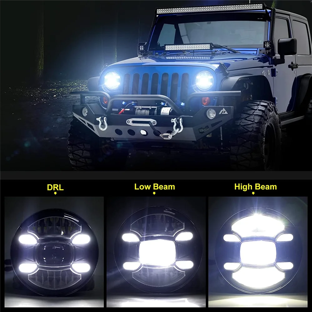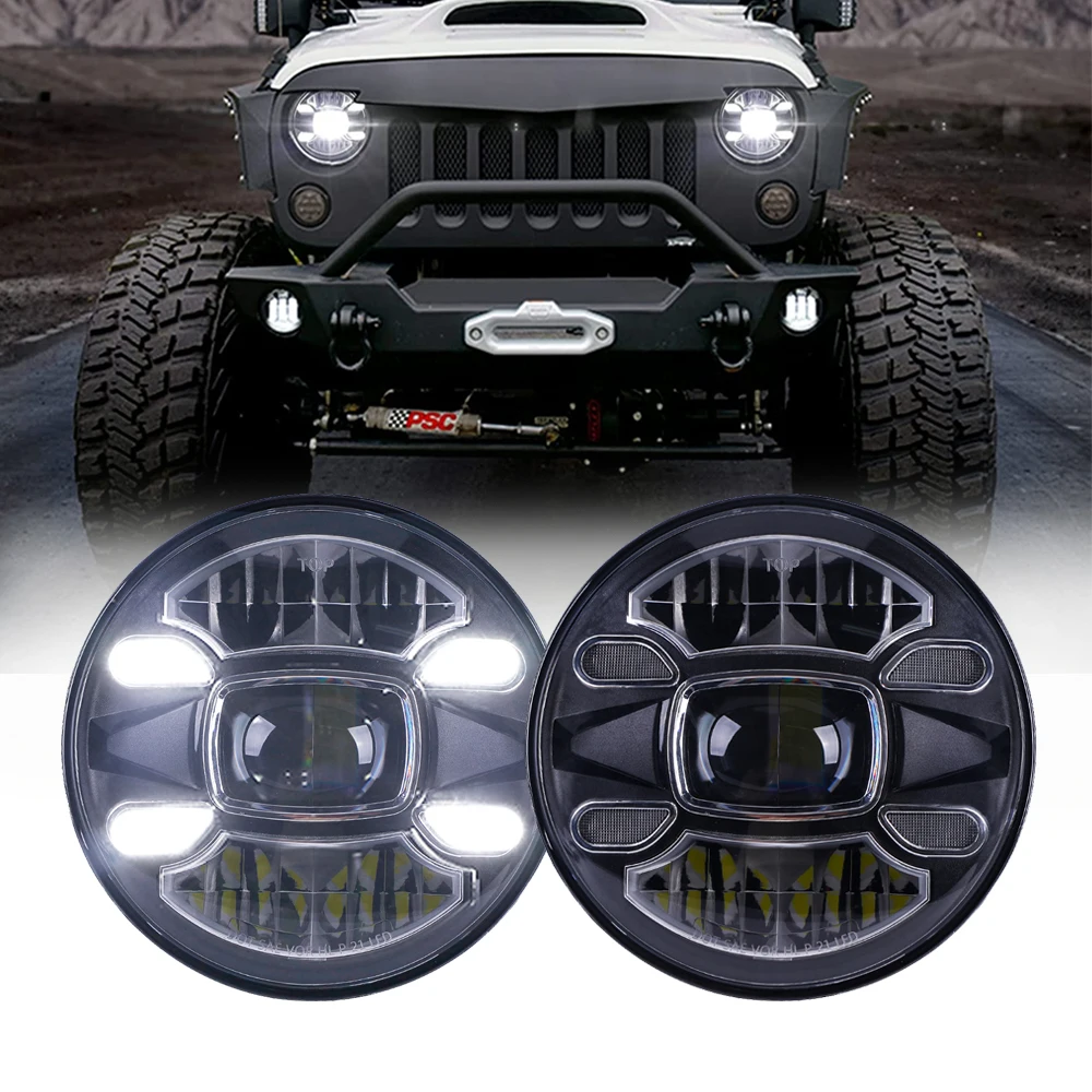 7-дюймовый светодиодный налобный фонарь, Круглый ходовой фонарь Darytime, светодиодный налобный фонарь для Jeep Wrangler JK TJ Off Road Lada Niva 4x4 Harley мотоцикла
