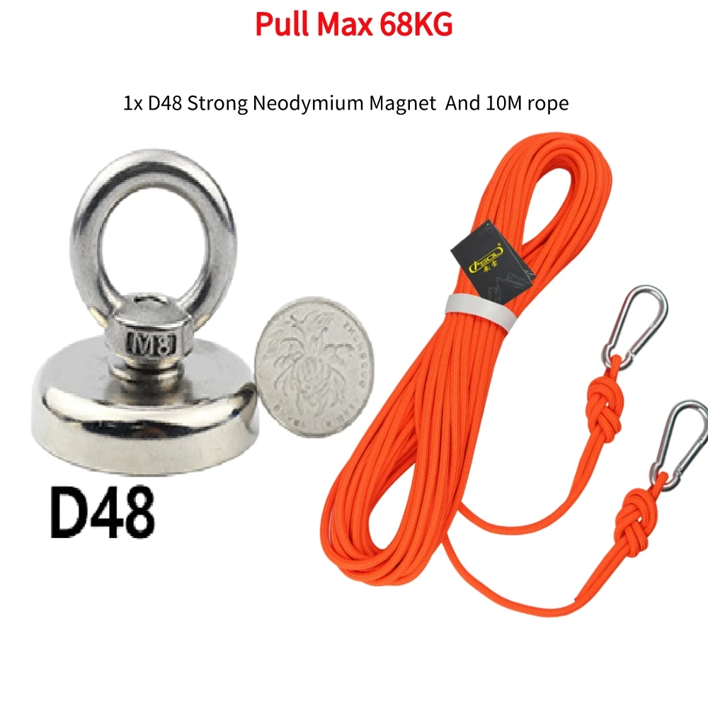 Сильный неодимовый магнит, максимальный вес 68 кг, с кольцом, окуляром, веревкой, крючком для извлечения рыбы в реке, море