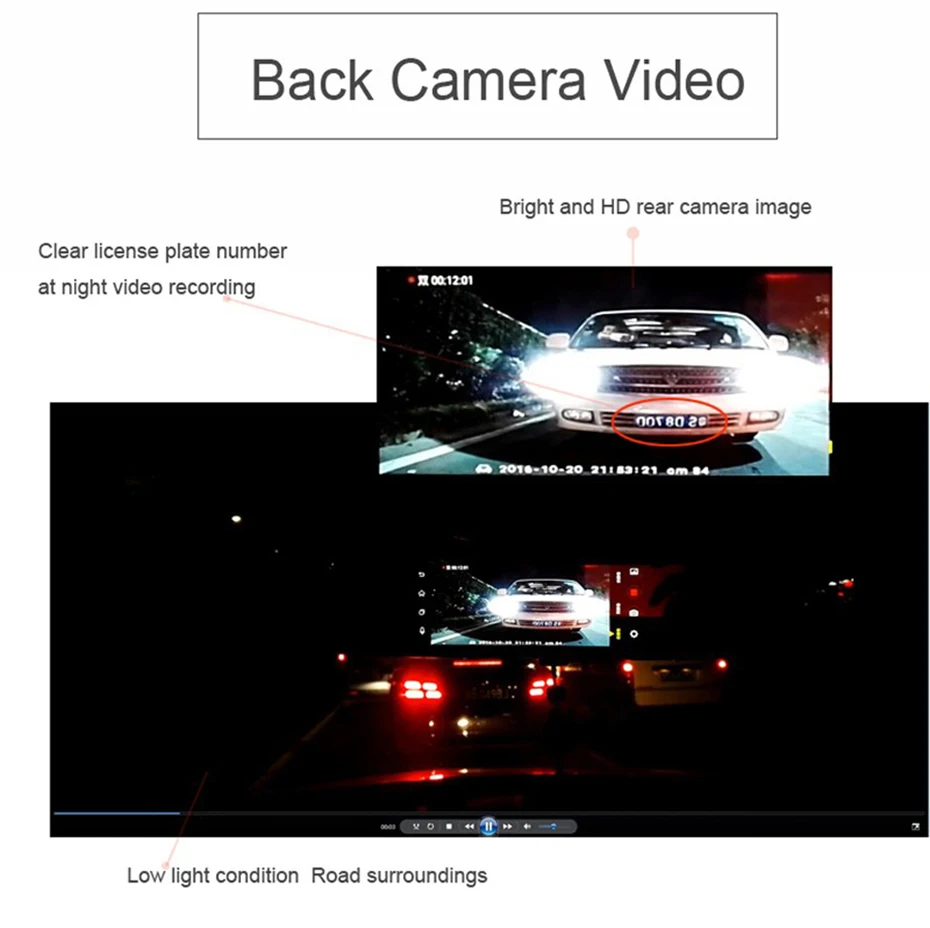 Объектив камеры составляет 1/3 дюйма CMOS, диафрагма F2.0, 0,1 люкс, HD видео хорошая производительность, как глаза совы, четко различать все в условиях низкого светильник. Благодаря уникальной технологии, даже если вокруг очень темно, задняя камера все еще записывает видео ярко, как в дневное время.