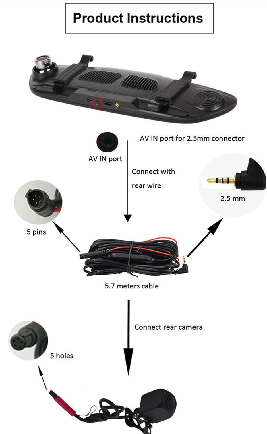 Эта задняя камера будет работать для автомобильного видеорегистратора с цифровым сигналом AV IN. Он не поддерживает аналоговый сигнал. И AV в порту диаметр составляет 2,5 мм,Не 3,5 мм, такие как порт для наушников на вашем смартфоне.Если ваш Автомобильный видеорегистратор не находится в нашем WHEXUNE магазине, перед покупкой нашей задней камеры ночного видения, пожалуйста, сначала проверьте ниже, а затем свяжитесь с нами, чтобы помочь вам сделать окончательное подтверждение:1, проверьте, пожалуйста, убедитесь, что ваш Автомобильный видеорегистратор AV в порт 2,5 мм;2, пожалуйста, проверьте, является ли ваша оригинальная задняя камера 5 контактами.3, пожалуйста, проверьте, поддерживает ли ваш Автомобильный видеорегистратор цифровое сигнальное видео;