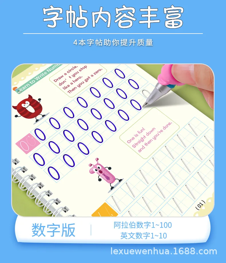 LE многоразовая детская тетрадь для каллиграфии с номерами 0-100, учебник для рукописного письма, обучение английской искусственной живописи для детей