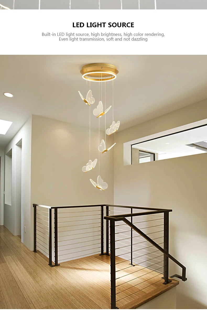 Светодиодная люстра с бабочками для большой лестницы, лампа для сто...