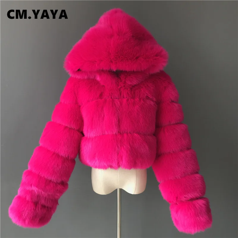 Женская однотонная прямая шуба CM.YAYA из искусственного меха с капюшоном, короткая теплая мягкая подходящая ко всему Укороченная шуба, женская модная уличная зимняя одежда