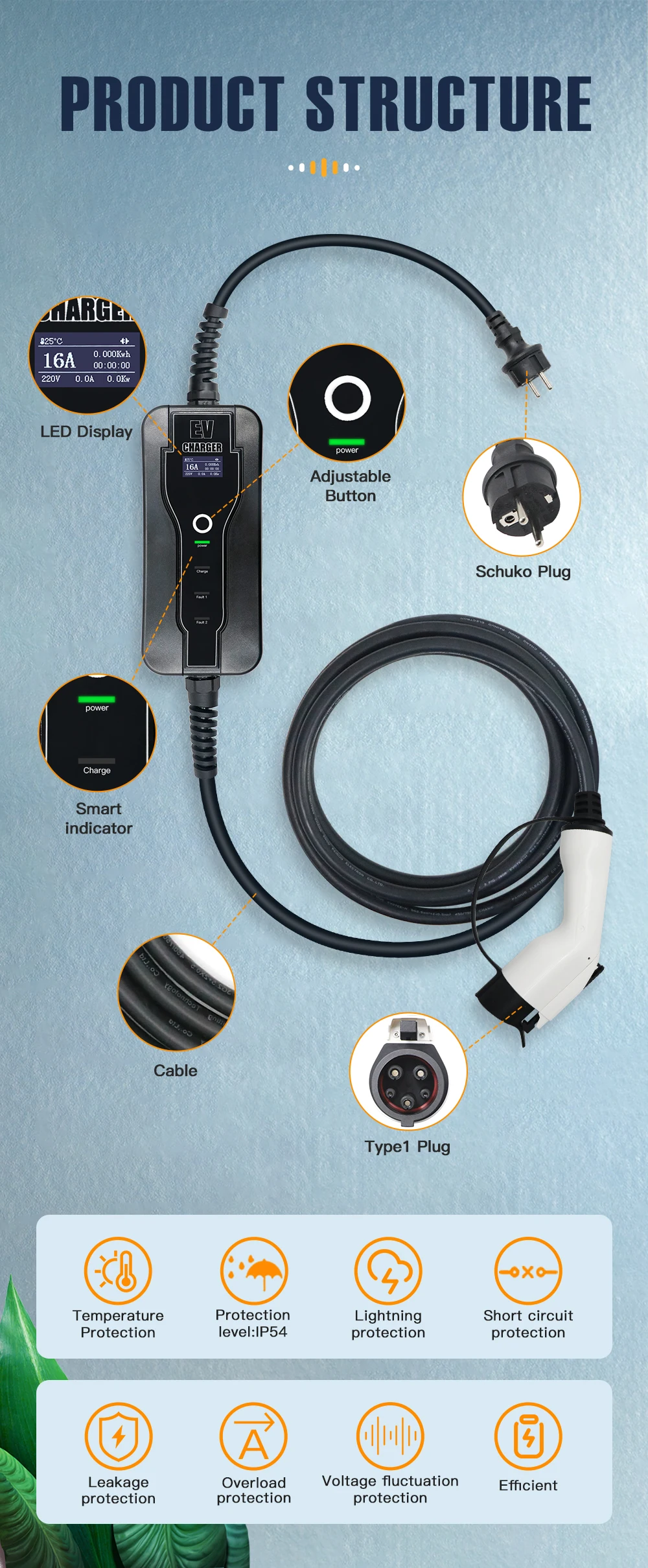 Портативное зарядное устройство для электромобилей типа 1, Тип 2, п...