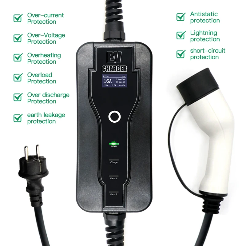 Портативное зарядное устройство 16 А SAE J1772 тип 1 EVSE EV, заряд...