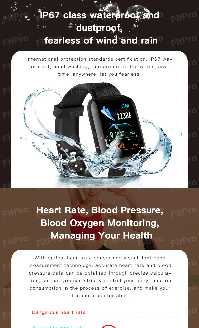 116 Plus смарт-браслет, умные часы, браслет, фитнес-трекер, датчик ...