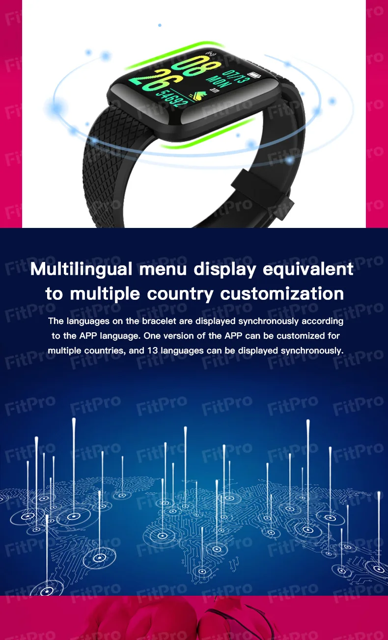 Смарт-часы D13 116Plus для мужчин и женщин, водонепроницаемые спортивные Смарт-часы с тонометром, пульсометром и фитнес-трекером