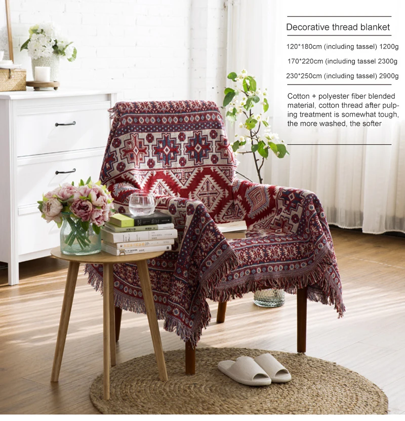 Качественное одеяло для дивана в богемном стиле, домашнее покрывало...