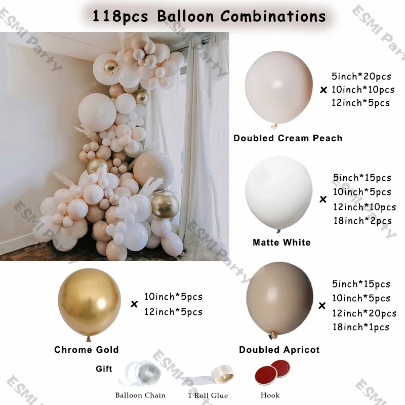 118 шт двойные кремовые персиковые латексные воздушные шары абрикосовый белый баллон гирлянда Арка День Рождения Вечеринка невесты украшение для свадьбы дня рождения
