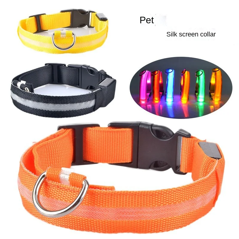 Нейлоновый светодиодный ошейник для собак, ночная безопасность, миг...