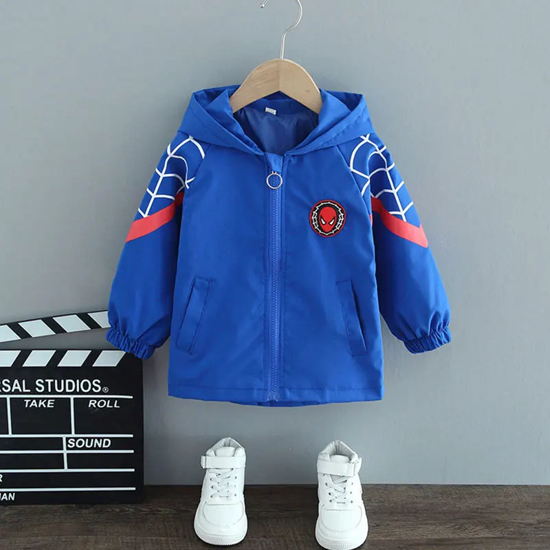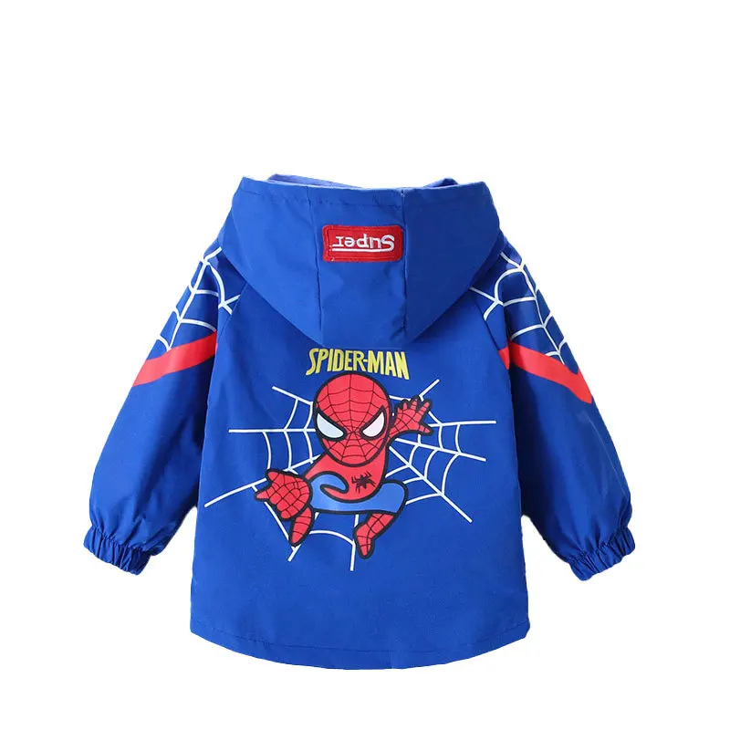 Модная куртка для мальчиков, весна-осень 2021, Детский костюм в Корейском стиле для малышей, детские куртки с капюшоном и мультяшным человеком-пауком для осени