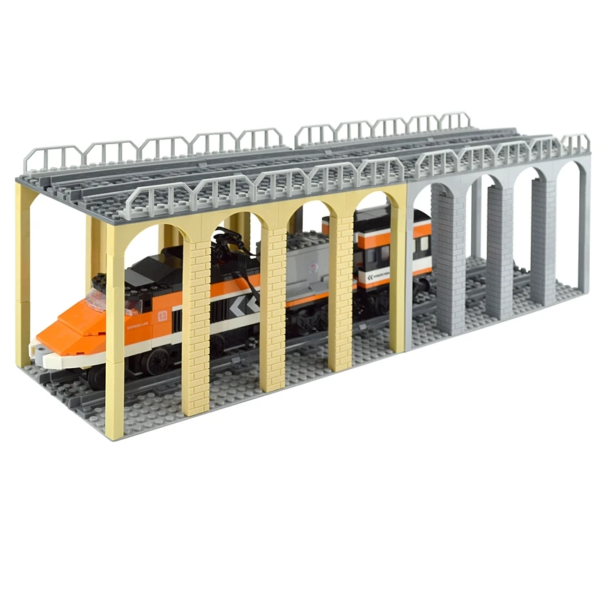 Конструктор MOC, детали для города, поезда, моста с треками, железн...