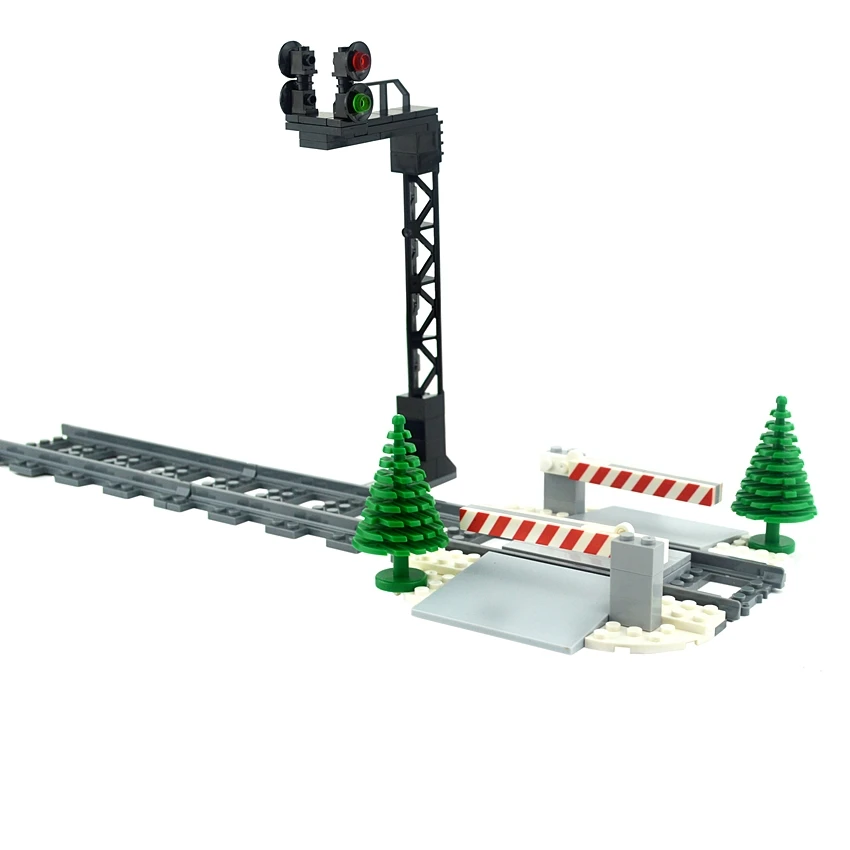 Конструктор MOC, детали для города, поезда, моста с треками, железной дороги, светофора, знак, блок, Рычажная станция, Обучающие детали сделай сам