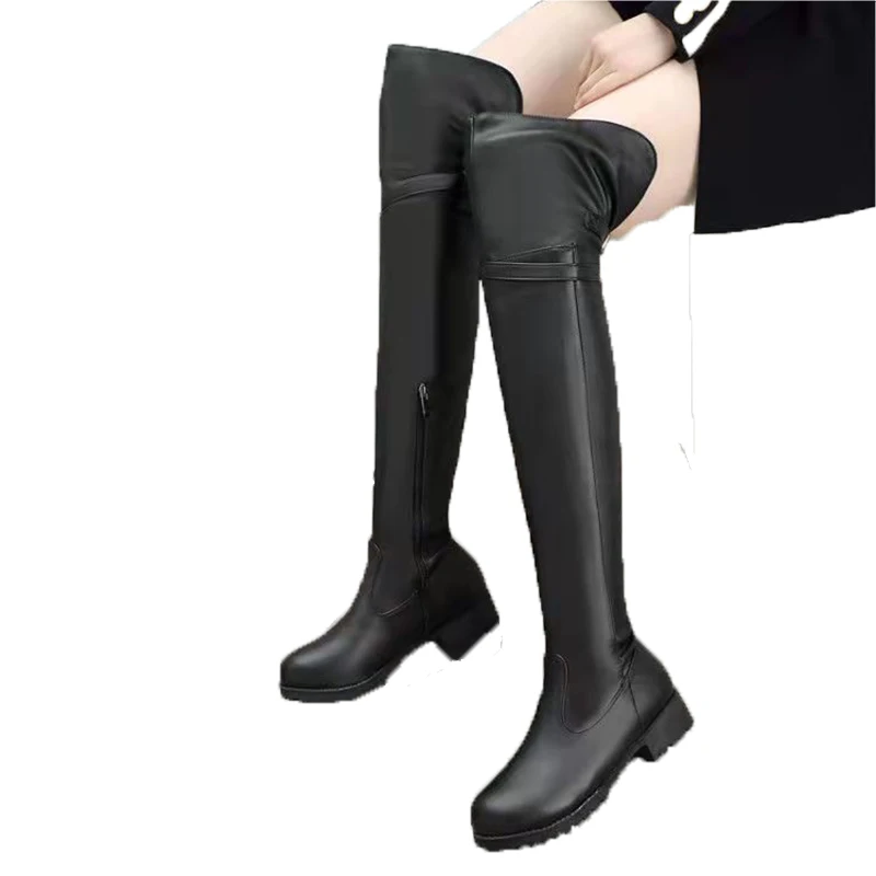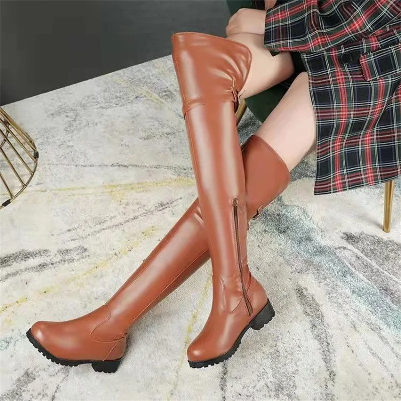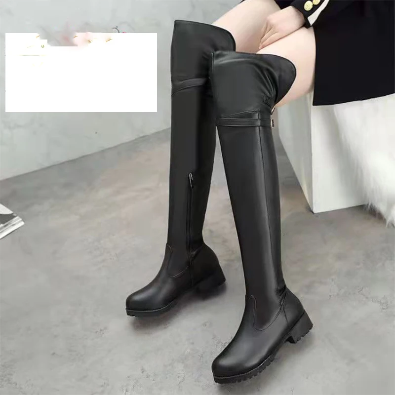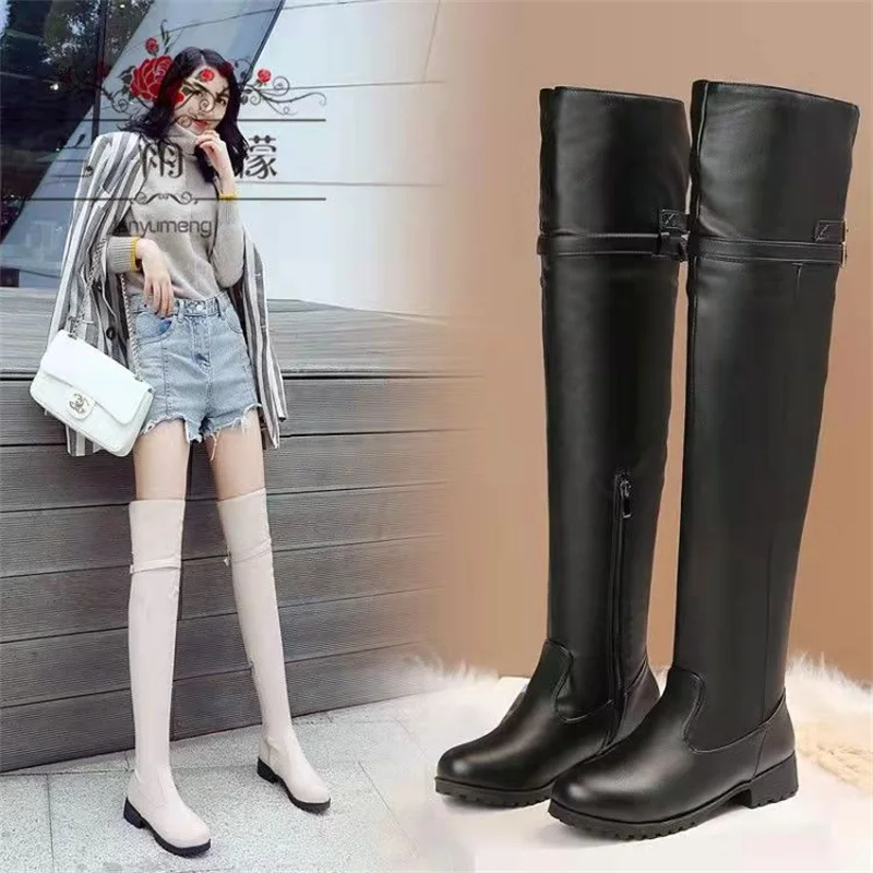 Женские высокие сапоги до колена, новинка осень-зима 2021, модные длинные сапоги-трубы на Плоском Каблуке, с боковой молнией и пряжкой