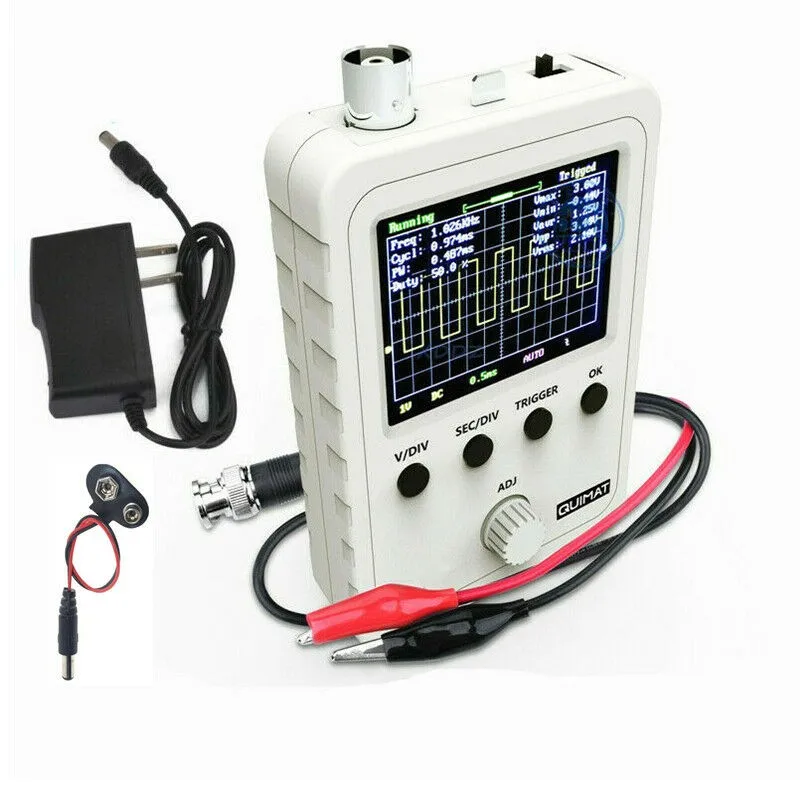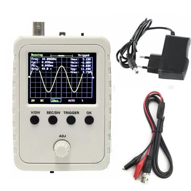 Цифровой осциллограф DSO150, портативный мини ЖК-дисплей 2,4 дюйма с испытательным зажимом, 9 В, 1 А, адаптер питания, аккумулятор