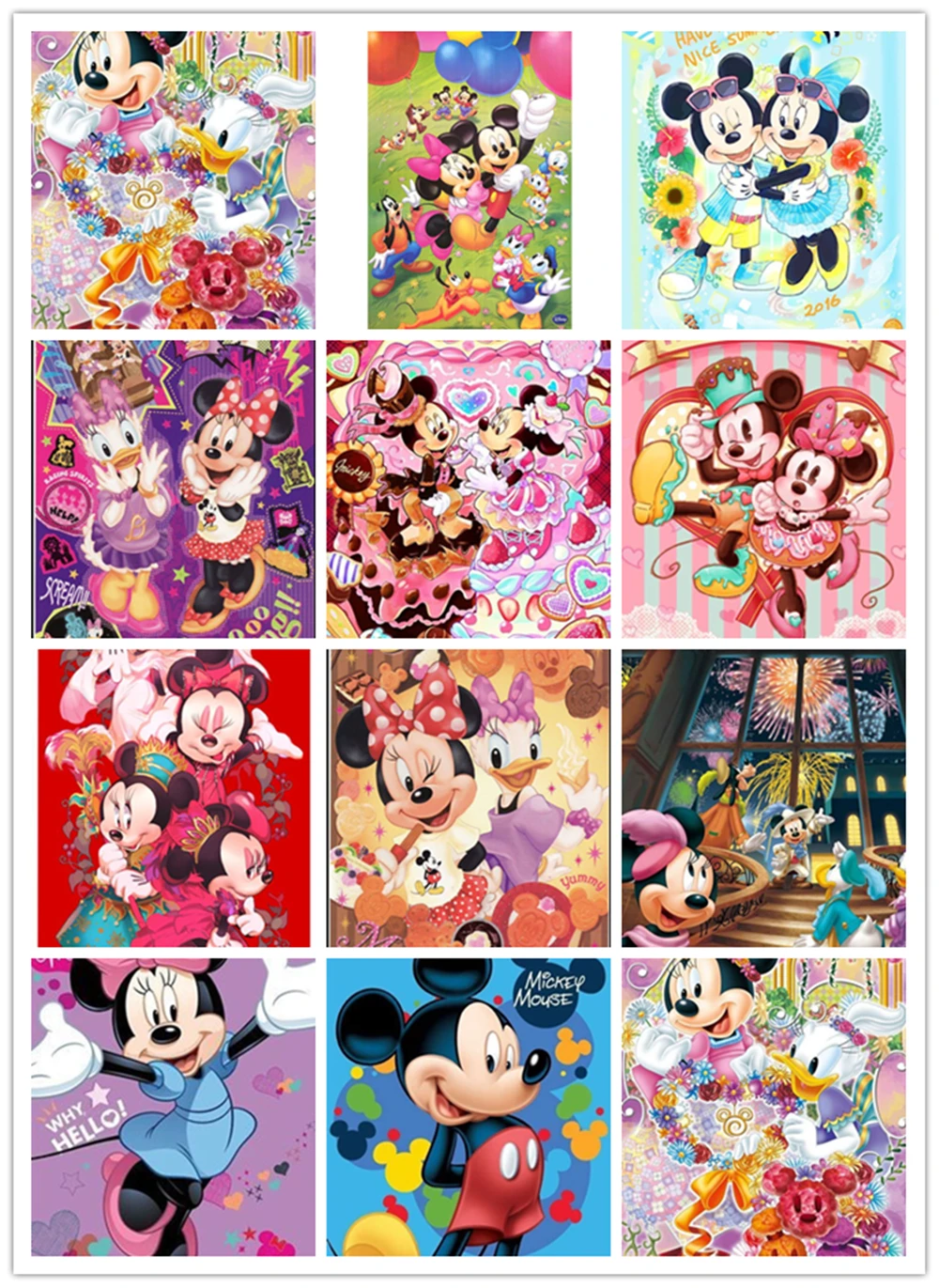 Алмазная живопись 5D сделай сам Диснея, картина с квадратнымикруглыми стразами Микки и Минни, вышивка крестиком, подарок для детей, домашний декор