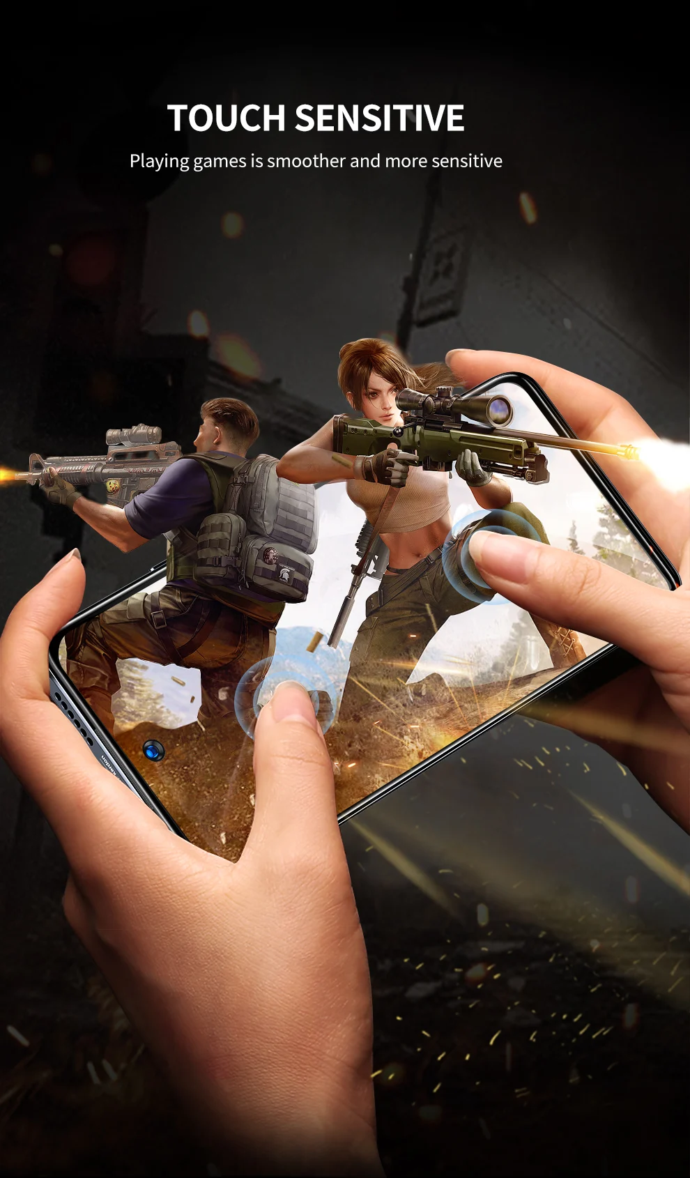 100% сенсорный точный и 3d-сенсорный датчик. Идеальная матовая поверхность имеет ощущение Шелкового прикосновения, волшебно сопротивляется загрязнениям, поту и раздражающим отпечаткам пальцев, почти не вызывает фрикционного сопротивления. Вы можете испытать комфортные ежедневные операции и игровые операции.