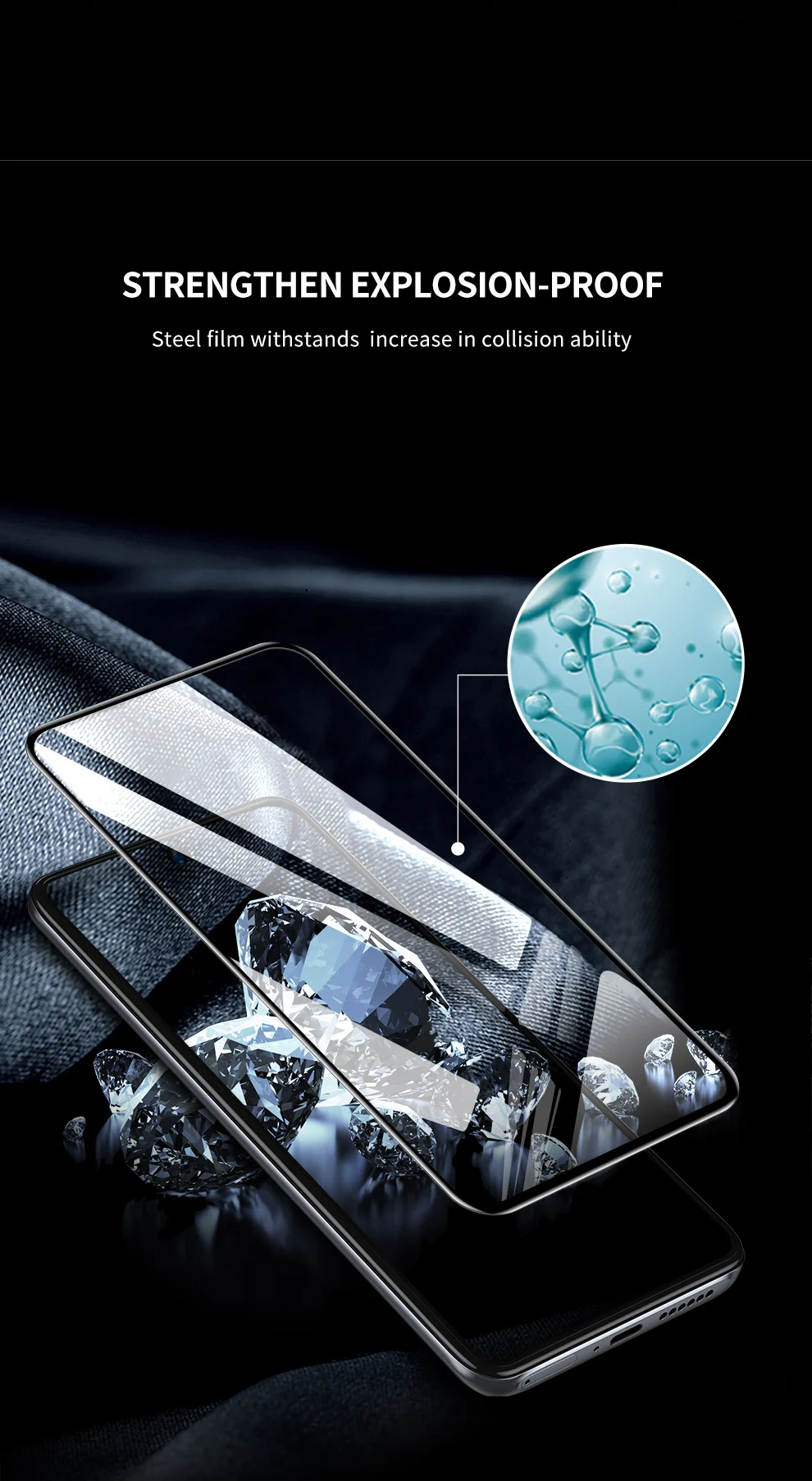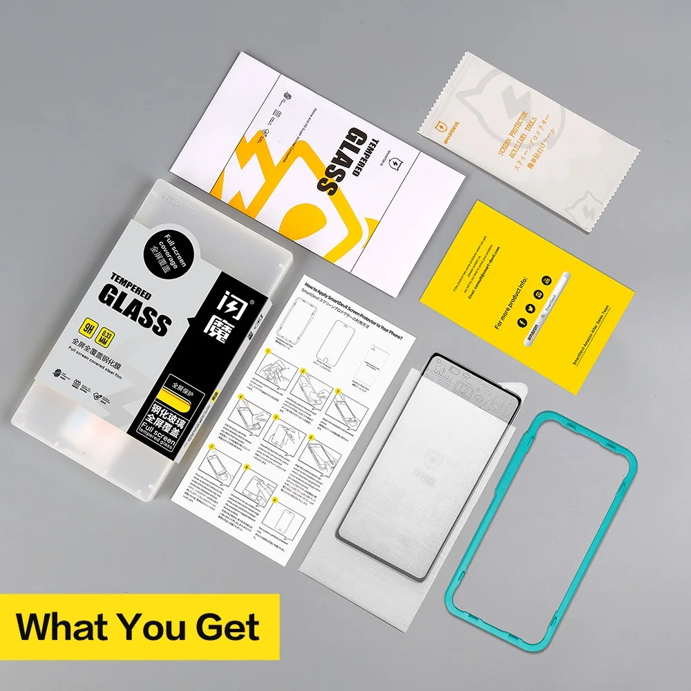 Это 9H Жесткий протектор экрана из закаленного стекла, эффективно защищает ваш телефон от падений и царапин, сделанных ключами, монетами, ножами или любыми другими твердыми веществами.