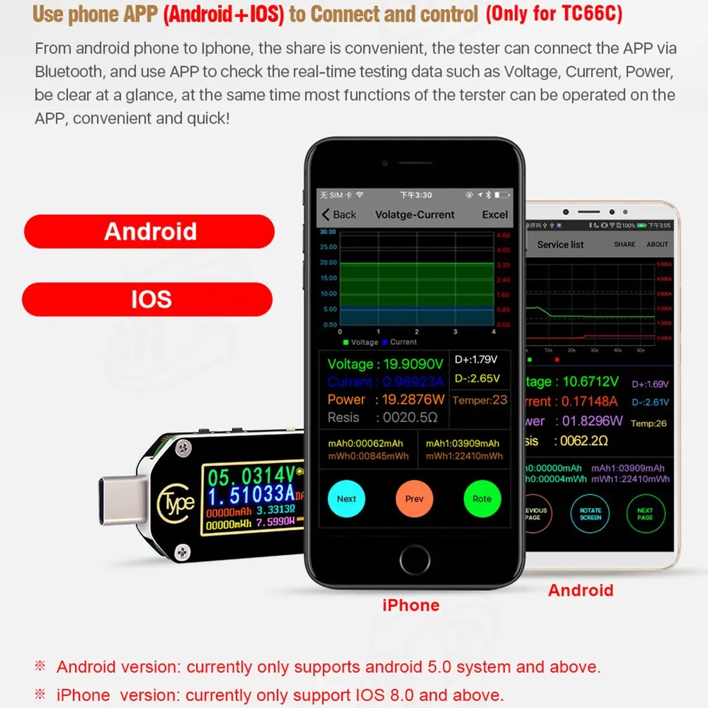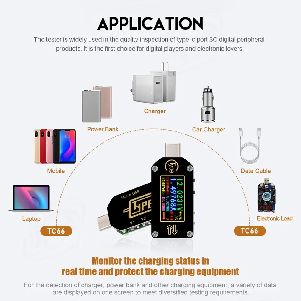 USB-тестер TC66TC66C Type-C для зарядки аккумуляторов и батарей