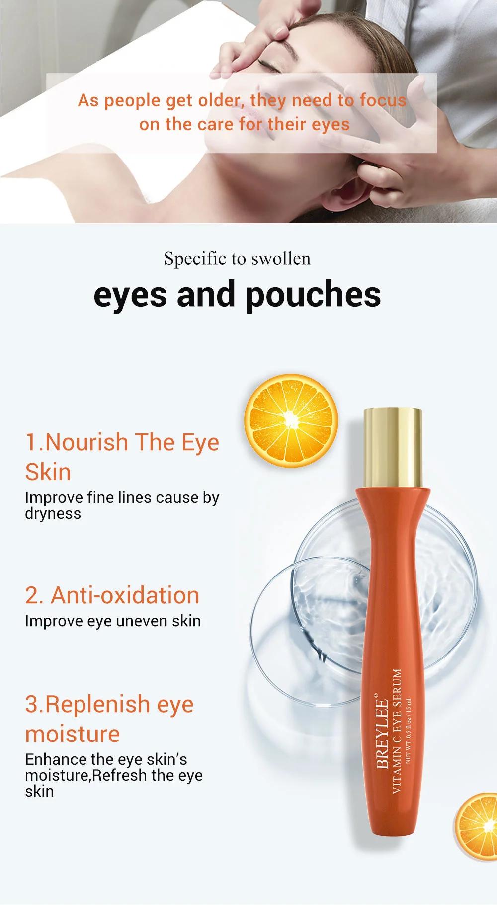 BREYLEE Витамин C, сыворотка для глаз, роликовый массаж, отбеливание, цветовая гамма, меланин, антиокисляющий увлажняющий уход за кожей