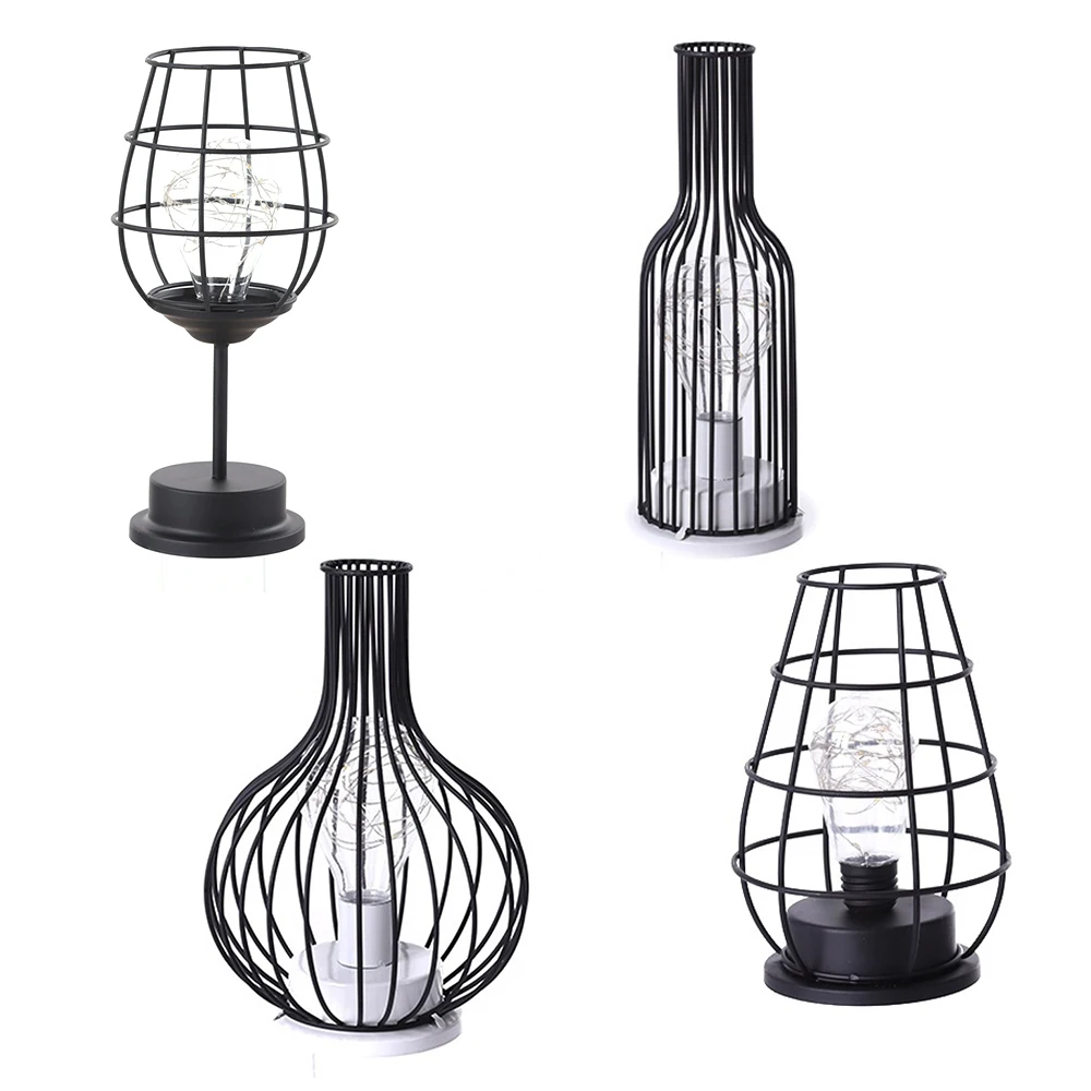 Светодиодный светильник для питья, стеклянный светильник, креативный, из кованого железа, Ночной светильник, полый, форма бутылки вина, декоративный фонарь, лампа для бутылки Красного вина
