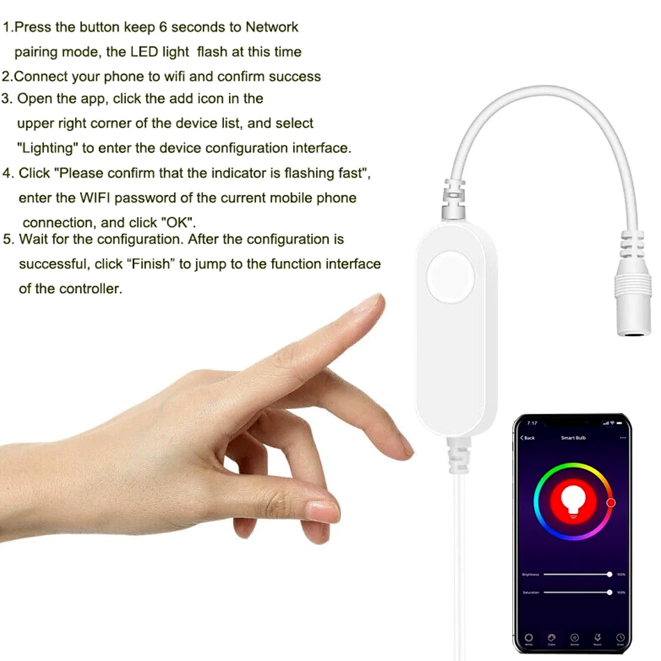 Wifi светодиодный светильник RGB контроллер SmartКонтроллер RGB светодиодный светильник, совместимый с Alexa и Google HomeГолосовое управление iOS/Android управление приложением для смартфонов (без адаптера питанияВ комплекте)Продукт может управляться удаленно через Alexa Google или IFTTT voice и smartphone.* Нет необходимости в хосте, прямое подключение к wifi, дистанционное управление с помощью приложения, таймер.* Интеллектуальная связь сцен, предварительное выполнение сцен с одной кнопкой.* Поддержка Amazon Alexa Echo и голосового управления Google дома.* Поддержка совместного использования устройств и многоиндивидуального контроля.* Ультра-низкое энергопотребление, энергосбережение.Где используется этот контроллер?Он может использоваться в развлекательных, вечерние, свадебные, бара, бальных, кинотеатральных, развлекательных площадках.Он может использоваться в автомобиле, рекламной доске, освещении, декоративной подсветке телевизора, подсветке компьютера.Как его использовать?1. Подключите этот wifi светильник-полосу к светодиодный светильник4 контактный разъем, а также Подключите к источнику питания через порт постоянного тока сАдаптер питания на светильник.2. Найдите «Smart Life» в вашем app store или отсканируйте qr-код в руководстве пользователя, чтобы загрузить и установить его.3. Зарегистрируйте свою учетную запись Smart Life.4. Перейдите в приложение smart life на своем телефоне, нажмите «напрямую подключить устройство»Управление ", затем вы можете контролировать светодиодный светильник с помощью телефона.Совместимость с Alexa Che & Google Assistant & IFTTTAlexa, включить/выключить {светильник name}Alexa, установите {светильник name} до 1%-100%Alexa, dim/brighten {светильник name}Alexa, увеличение/уменьшение {светильник name}Alexa, установите {светильник name} на красный...Alexa, измените название {светильник name} обратить внимание на цвет синий...Alexa, замените {светильник} на холодный белый