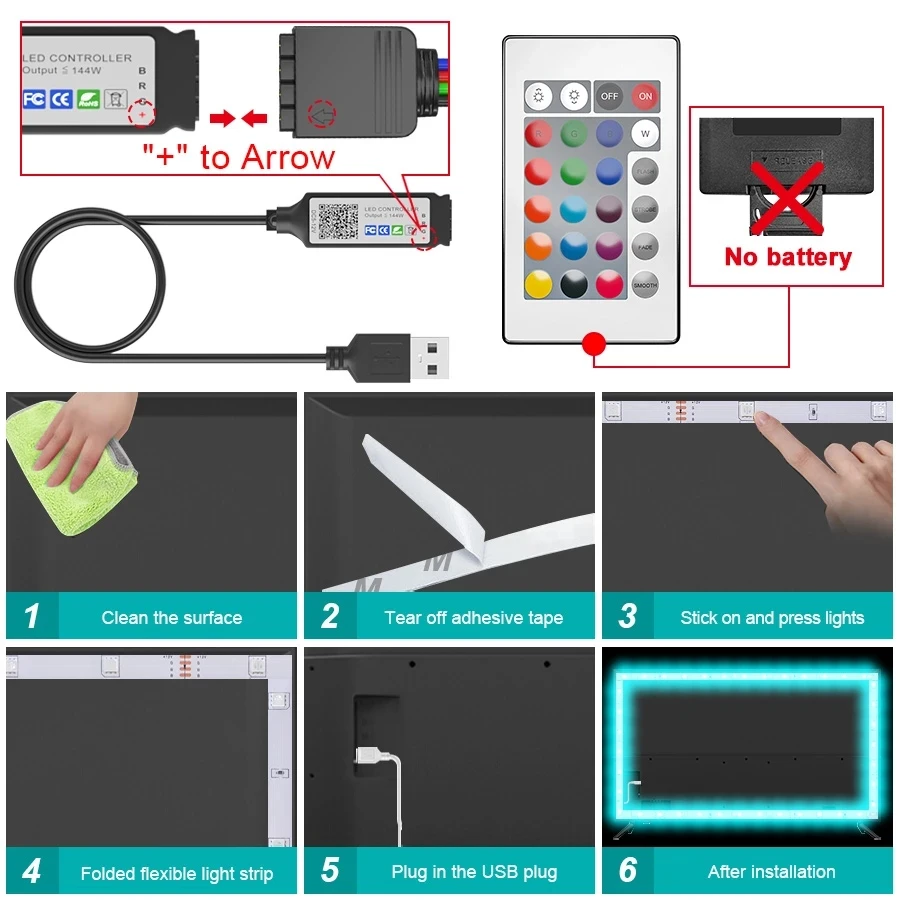 USB 24Key Bluetooth-совместимый комплект: USB 5V Светодиодная лента + USB 24Key Bluetooth-совместимый пульт дистанционного управления