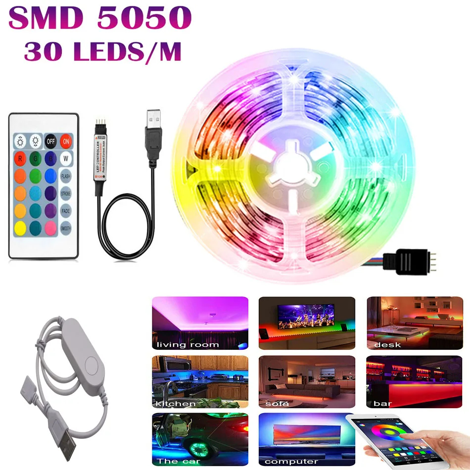 Светодиодная светильник та 5050 USB 5 в RGB гибкая лента WiFi Bluetooth-совместимая с пультом ДУ