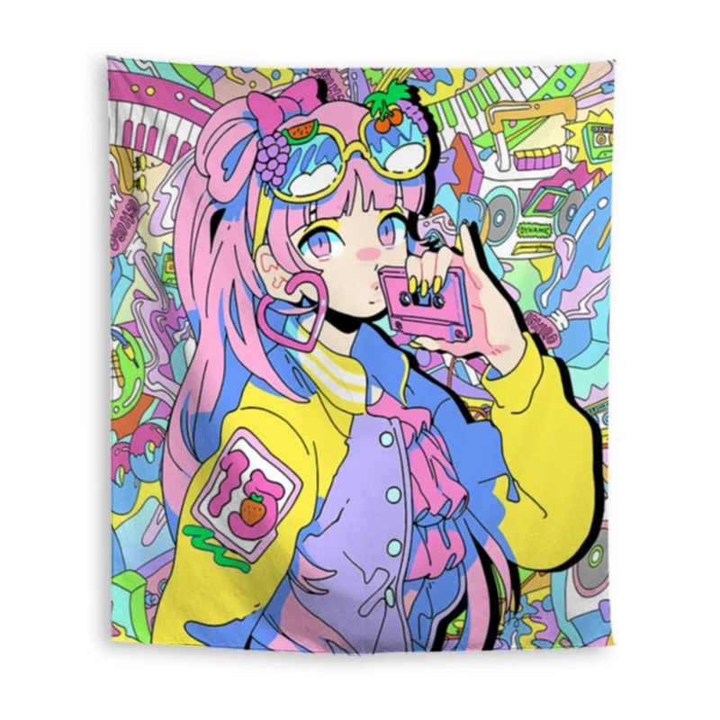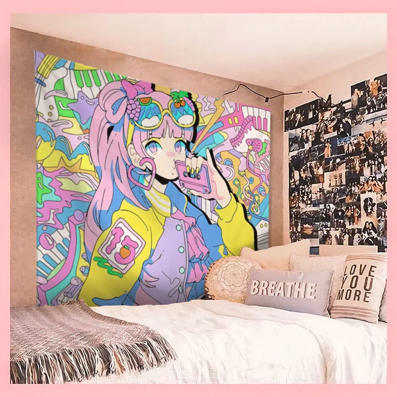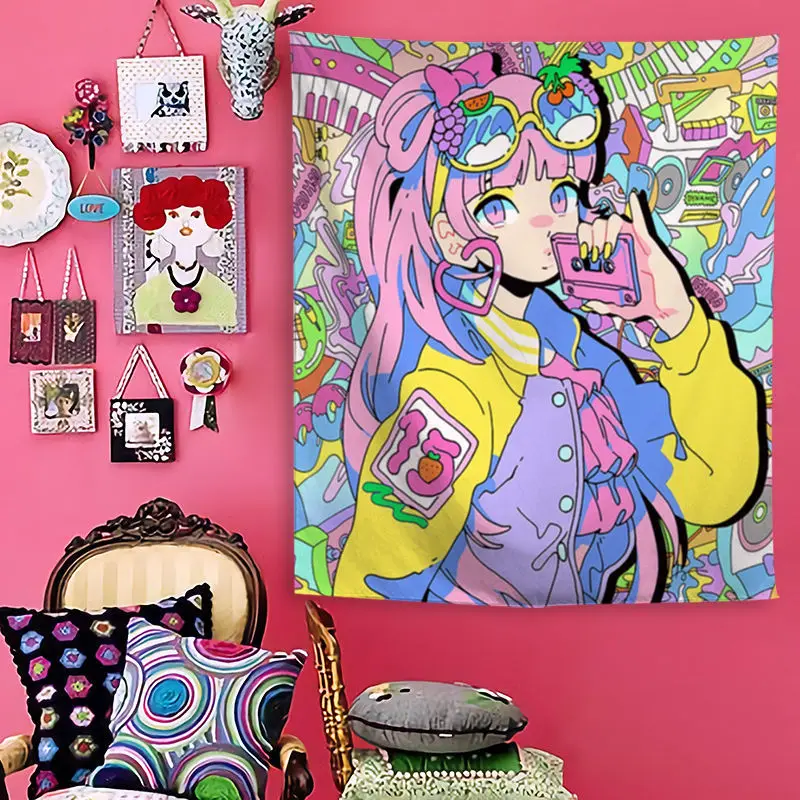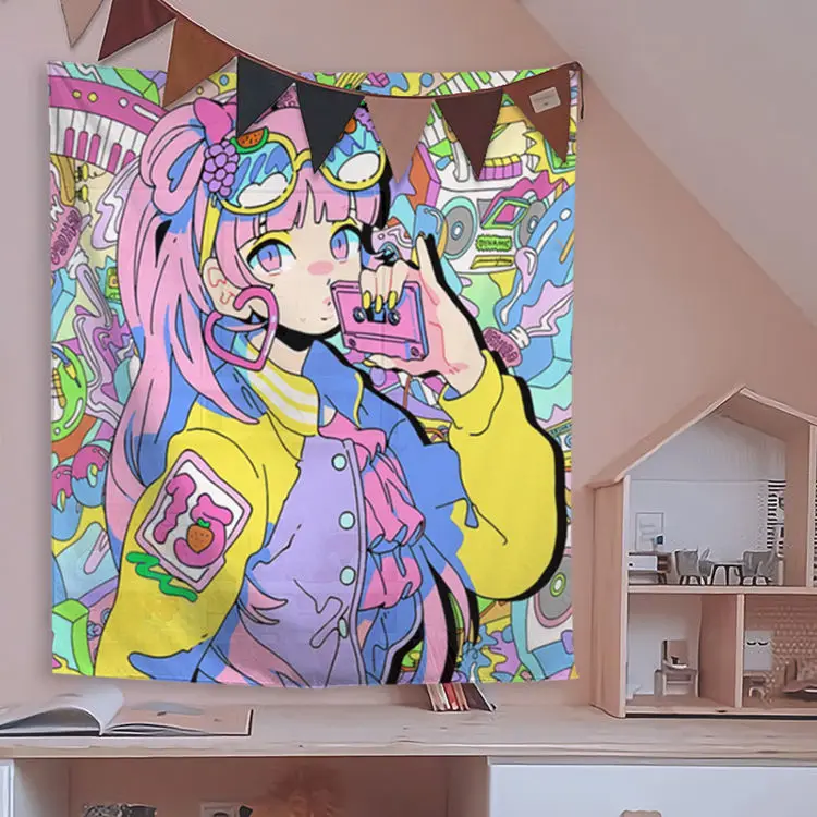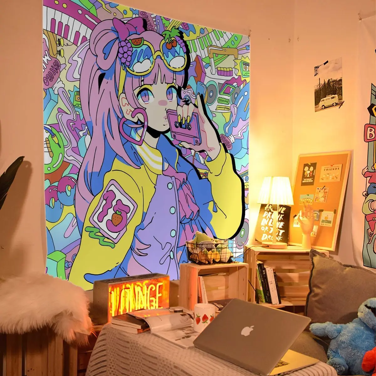 Милый гобелен с мультяшной девочкой, домашний декор, настенное одеяло, аниме гобелены, фон для спальни, декоративные тканевые гобелены для дивана