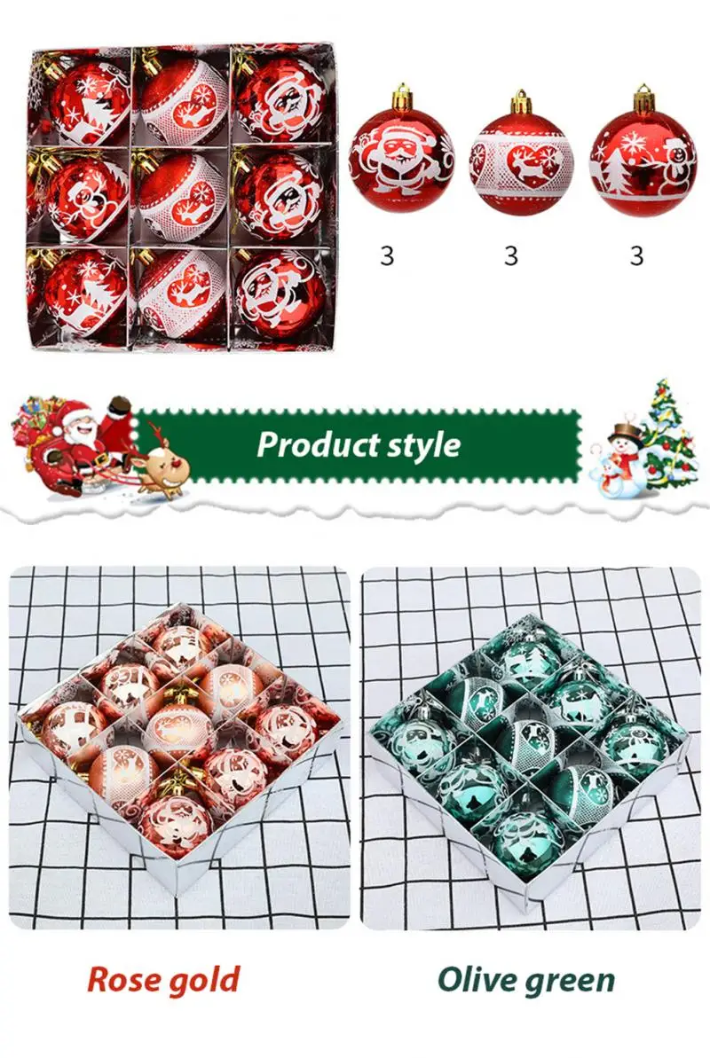 -Небьющиеся Рождественские шары: Эти рождественские украшения ручной работы. Изготовлено из прочного и экологически чистого пластика, оно обеспечивает отличные ударостойкие украшения. Не ломайте легко, не беспокойтесь о том, что стеклянные осколки вредят вам и рукам вашего ребенка