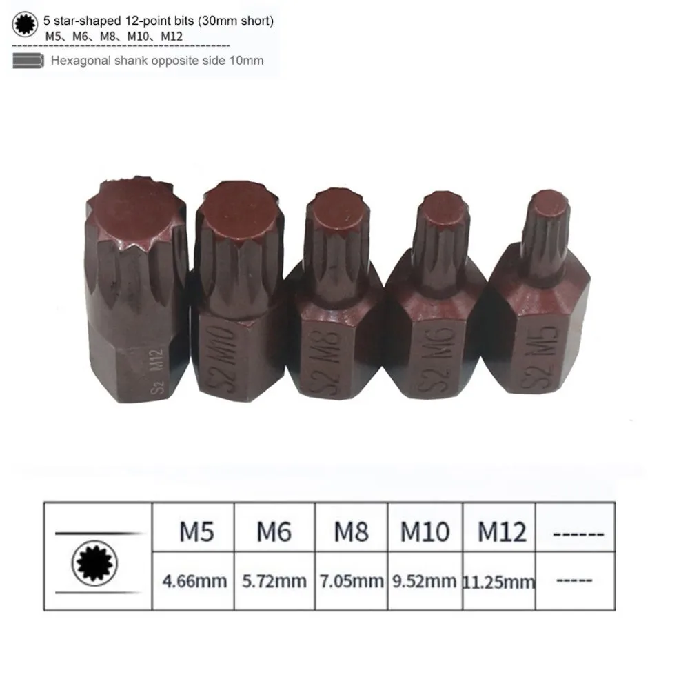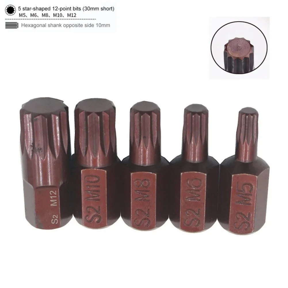 5 шт. M5681012 насадка для отвертки 30 мм Звездная головка шестигранный хвостовик S2 легированная сталь 12 точек подходит для ударной отвертки