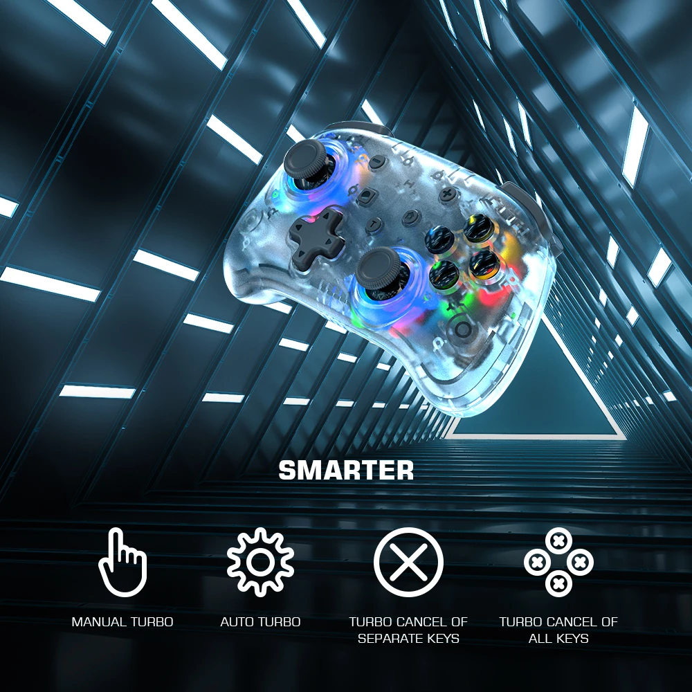 Турбо-Настройка может быстро выполнять пожарные действия, не оставляя жестких ударов на кнопках непрерывно, снимая усталость ваших пальцев, одновременно защищая геймпад. T4 Mini оснащен несколькими гибкими турбо-установками, которые позволяют максимизировать настройки турбо. На T4 Mini вы можете настроить ручное турбо, автоматическое турбо, турбо отмена одной кнопки и турбо отмена всех клавиш. Таким образом, различные геймеры могут выполнять различные игровые стратегии в разных играх, чтобы достичь максимального игрового опыта.