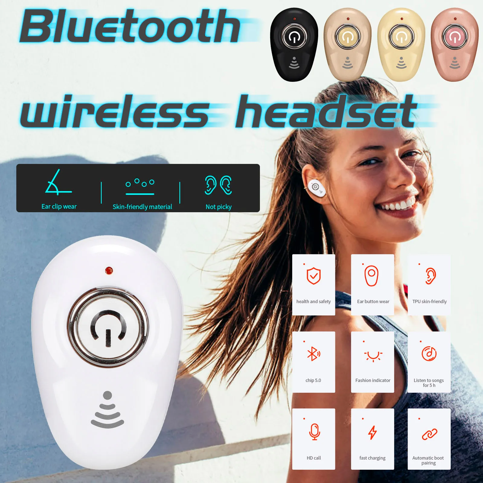 Материал: АБС-пластик. Цвет: белый, черный, золотой,Розовое золото. Версия: V4.1 + EDR. Расстояние передачи: 10 м. Время зарядки: 1-2 часа. Время разговора/прослушивания музыки: 4 часа. Время работы в режиме ожидания: 300 часов. (Примечание: возможны отклонения на 1-3 см из-за ручного измерения и незначительные цвета Разница, вызванная светильник и экран).Посылка включает: