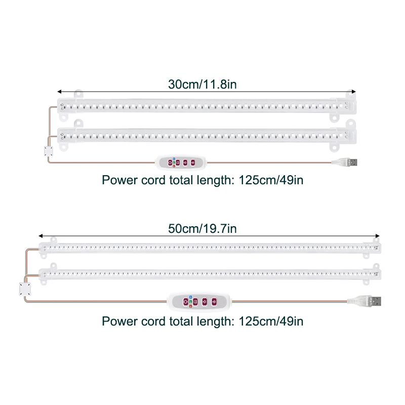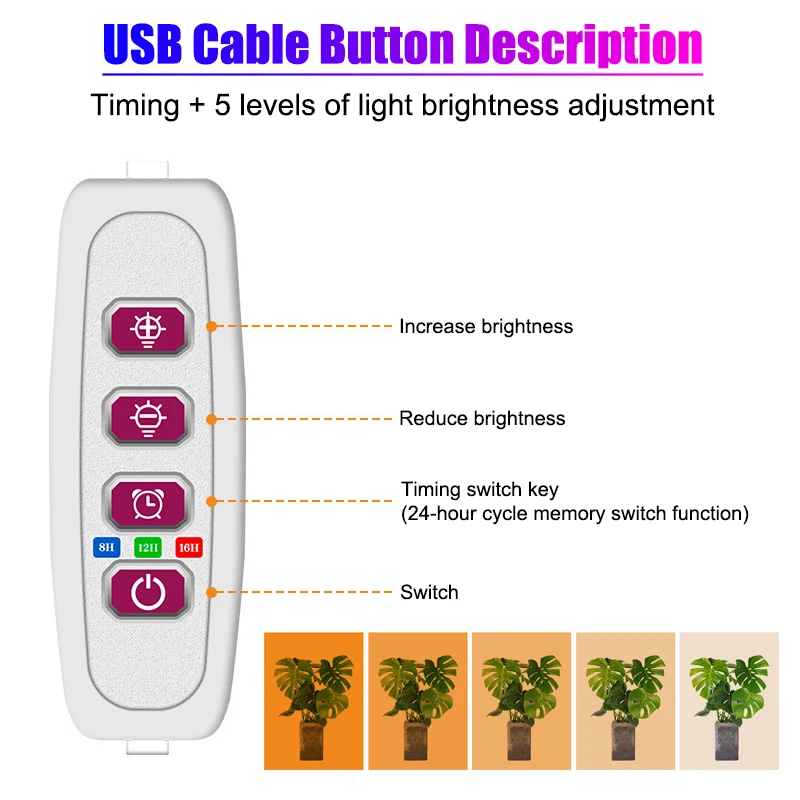 Особенности: 1. Красный + синий спектр является необязательным, который может удовлетворить потребности разного роста растений.2. Использование высокой яркости светодиодный интегрированному чипу, хорошая рассеивания тепла, высокая яркость и длительный срок службы.4,5 V USB вход переменного тока, может использоваться с портативным компьютером, мобильный источник питания, 5V адаптер переменного тока, более удобный в использовании5. Водонепроницаемый класс IP20, может предотвратить обычный срок службы.Спецификация: Напряжение: 5 В 2 АДлина: 30/50 смУгол луча: 120 °Светодиодный Тип: 2835SMDСветильник: красный + синийИндекс цветопередачи: >87Светодиодный Кол-во в коробке: 42/84/126/168 штПосылка включает в себя: 1/2/3/4X осветителе для саженцев (с переключателем линия)1X винт аксессуары мешок1X Руководство пользователя