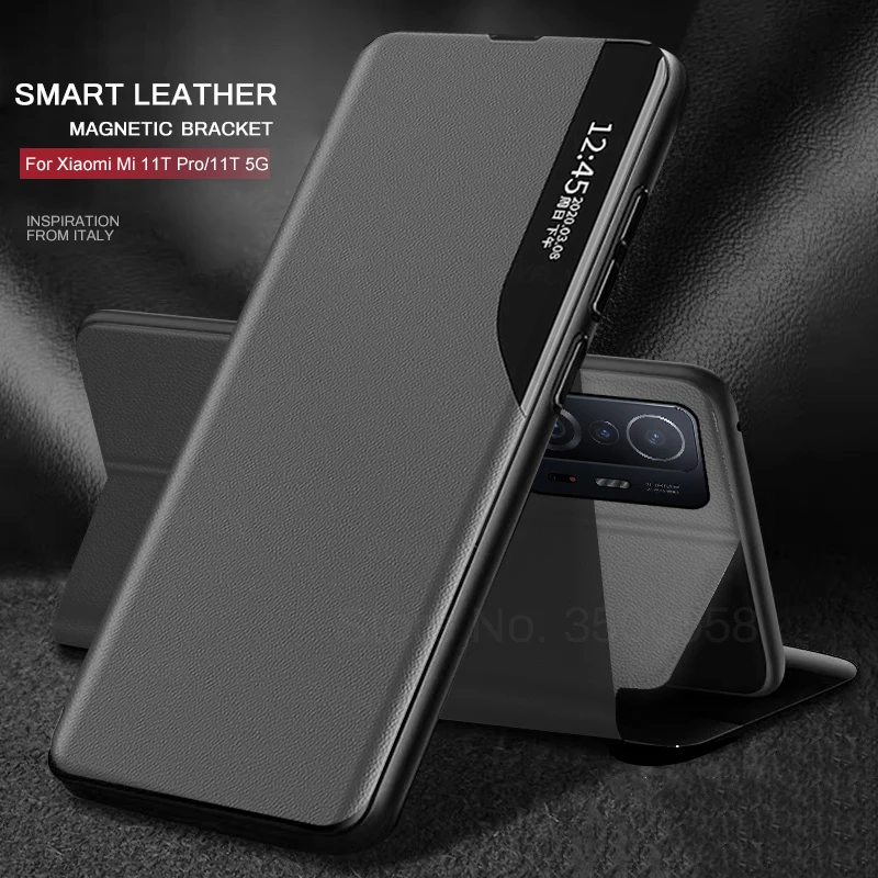 Умный чехол для Xiaomi 11 T Pro, флип-чехол с окошком для xiaomi Mi...